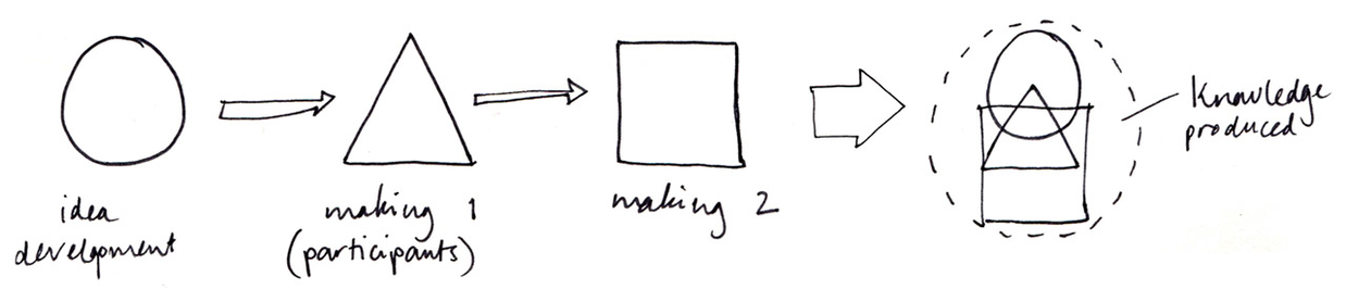 I intend the relationship between myself and participants to be democratic, or at least in opposition to the conventional verticial hierarchy that can be found in documentary film production. In this project, the structure of knowledge and power aims to be flattened, or more horizontal. The positioning of the objects or devices (instructions, images and audio recordings) as mediators or subjects in themselves, removes the person as 'othered' subject. On final exhibition, all visual artefacts including those made by collaborators and the eventual film will be displayed with equal emphasis, in dialogue with each other.