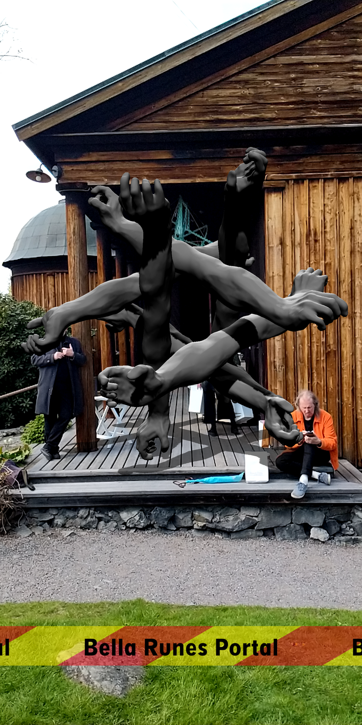 - "Bella Runes Portal", ett offentlig verk på Västerås privata och offentliga gator, som producerats av Västerås konstmuseum och som använder sig av Augmented Reality teknikgenom en app. Genom att bygga digitala porträtt av Generiska gatumiljöelement som bildar byggstenarna i skulpturer med ena benet i skulptur-på-torg och den andra i den digitala sfärens upphävande av gravitationskraften. Jag har arbetat med tekniken sedan 2015 genom 2 tidigare appar med 5 separata utställningar och som del av många olika utsätllningssammanhang i Sverige och utomlands. En pdf med material från de tidigare apparna "Konsekvensanalys" och "Bella Rune" finns också som del av expositionen. Under 2020 har jag inlett ett samarbete med Jonas Lythell, som arbetar vid Institutionen för data- och systemvetenskap på SU.
