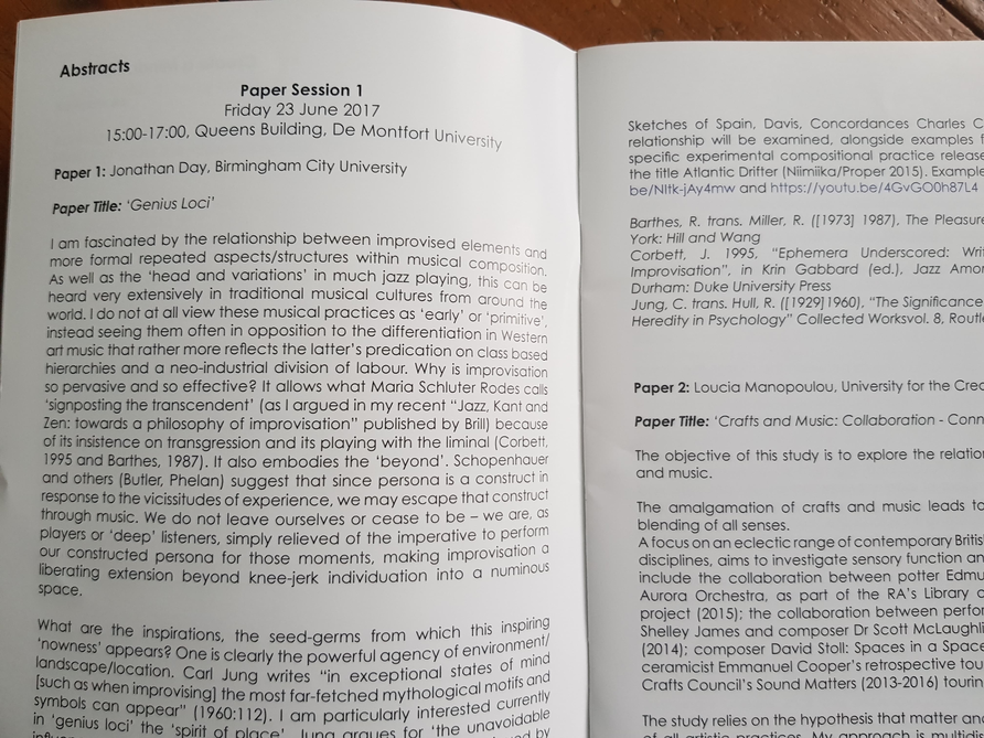Lecture and performance at “Songcraft”, Craft, Art and Sound Symposium, 2017, De Montfort University, Leicester