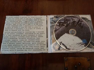 “The inspirations for Jonathan’s most recent recordings are as colourful and multi-facetted as the abundance of instruments featuring in his music–all picked up on his extensive travels to far flung corners of the world. Part of the multi-cultural treasure trove’s contents are a gu zheng from Kowloon, a tanpura from Chennai, a pair of iron gongs from Bali, a saung gauk harp from Myanmar and a butterfly dulcetina from Kalighat in India, which sit surprisingly well alongside his 1964-Burns guitar and a percussion section stolen from his kitchen” Evensi, https://www.evensi.uk/jonathan-day-spirit-library-album-launch/302789155
