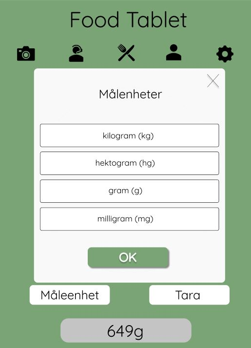 3: Ved å trykke på "valg" velger man ønsket måleenhet for det som skal veies.