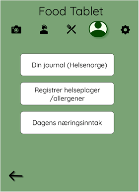 5: Etter man har veid ferdig maten kan du velge å få kostholdsråd videre fra ernæringsfysiolog, spørre om spørsmål du lurer på eller du kan velge en matplan etter eget ønske i menyen øverst i appen. På egen profil kan også koble til egen helsejournal via helsenorge. Registrere helseplager og man kan se dagens næringsinnhold.