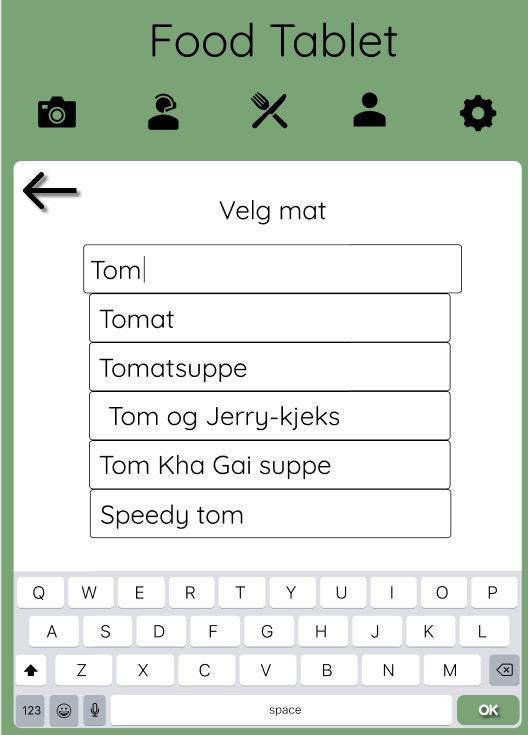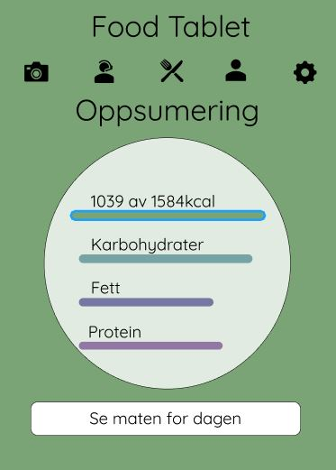 7: Videre kan man registerer enkelt matvarer eller matretter man spiser til et hvert måltid, dette er tenkt at registerer seg i dagens oppsummering og ligger lagret for alle til en hver tid, i videoen har vi ikke fått demonstrert dette grunnet tid.