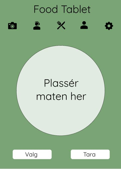 1: Åpne appen og man får opp hovedmenyen, trykk på "vei mat" for å starte veiingen.