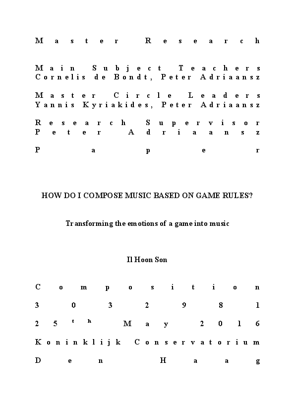 HOW DO I COMPOSE MUSIC BASED ON GAME RULES? Transforming the emotions of a game into music