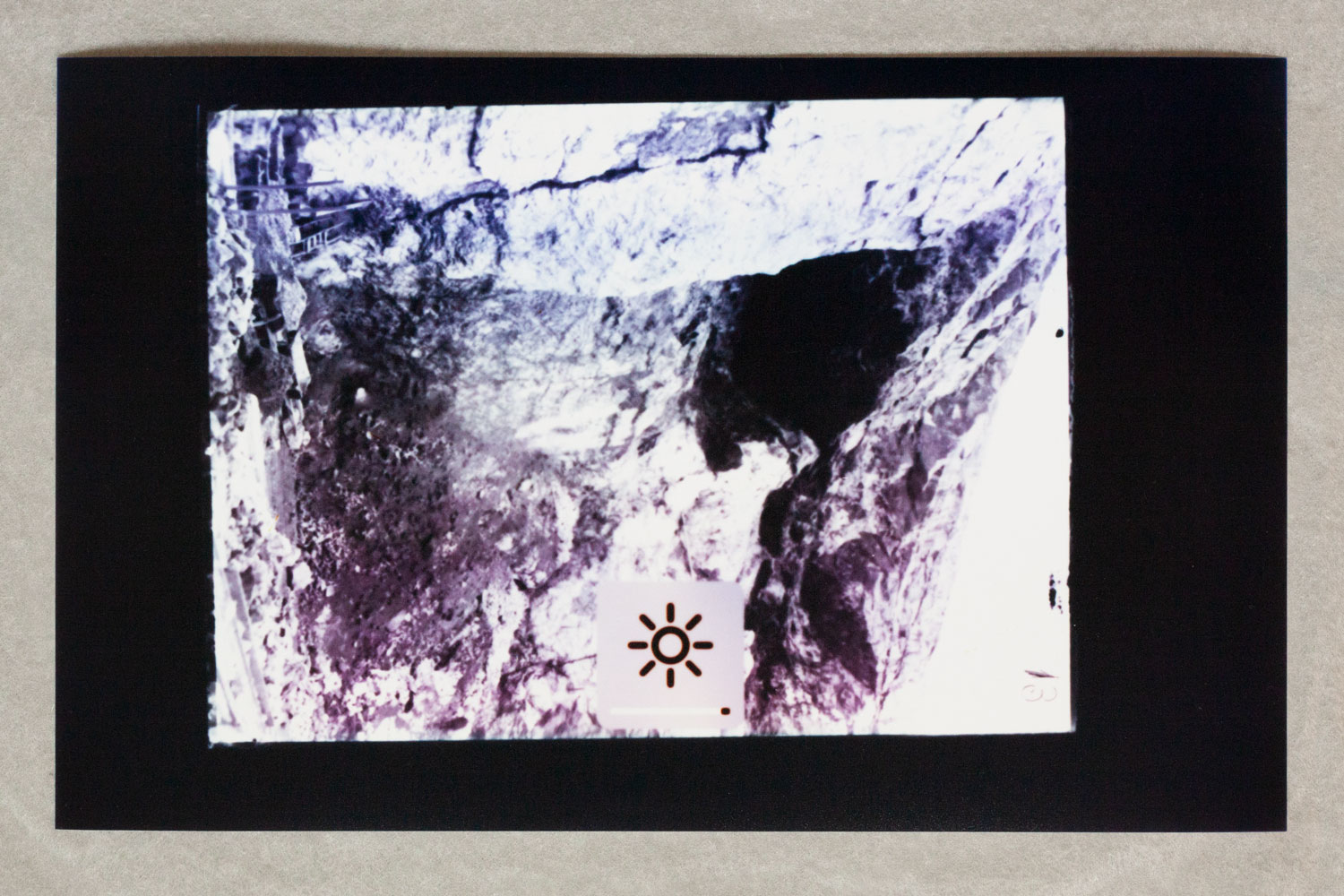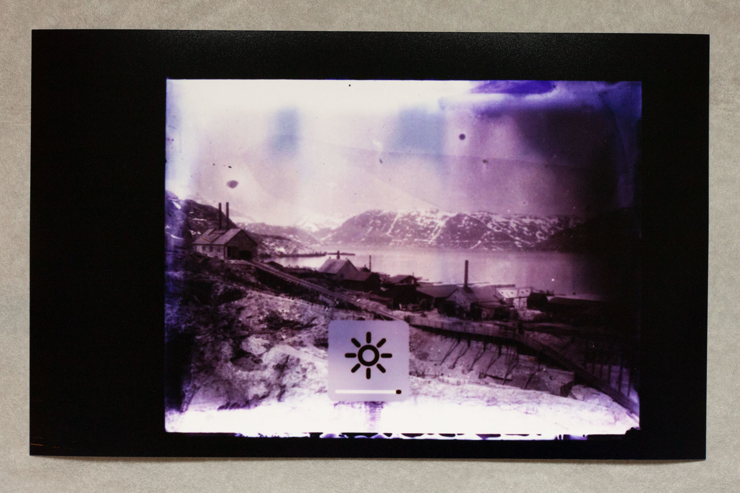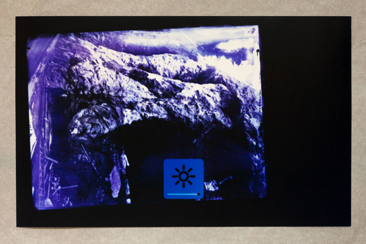 1 – Archive of Uncertainties is a group of works: a series of 14 photograms: Imperial Cabinet Card on MacBook Pro and 4 archive boxes: Orsugiaq, Kryolith, Mine- og Handels-Selskabet, The Fidgety Ones Were Here, and Polar Bear and Pick Axes.