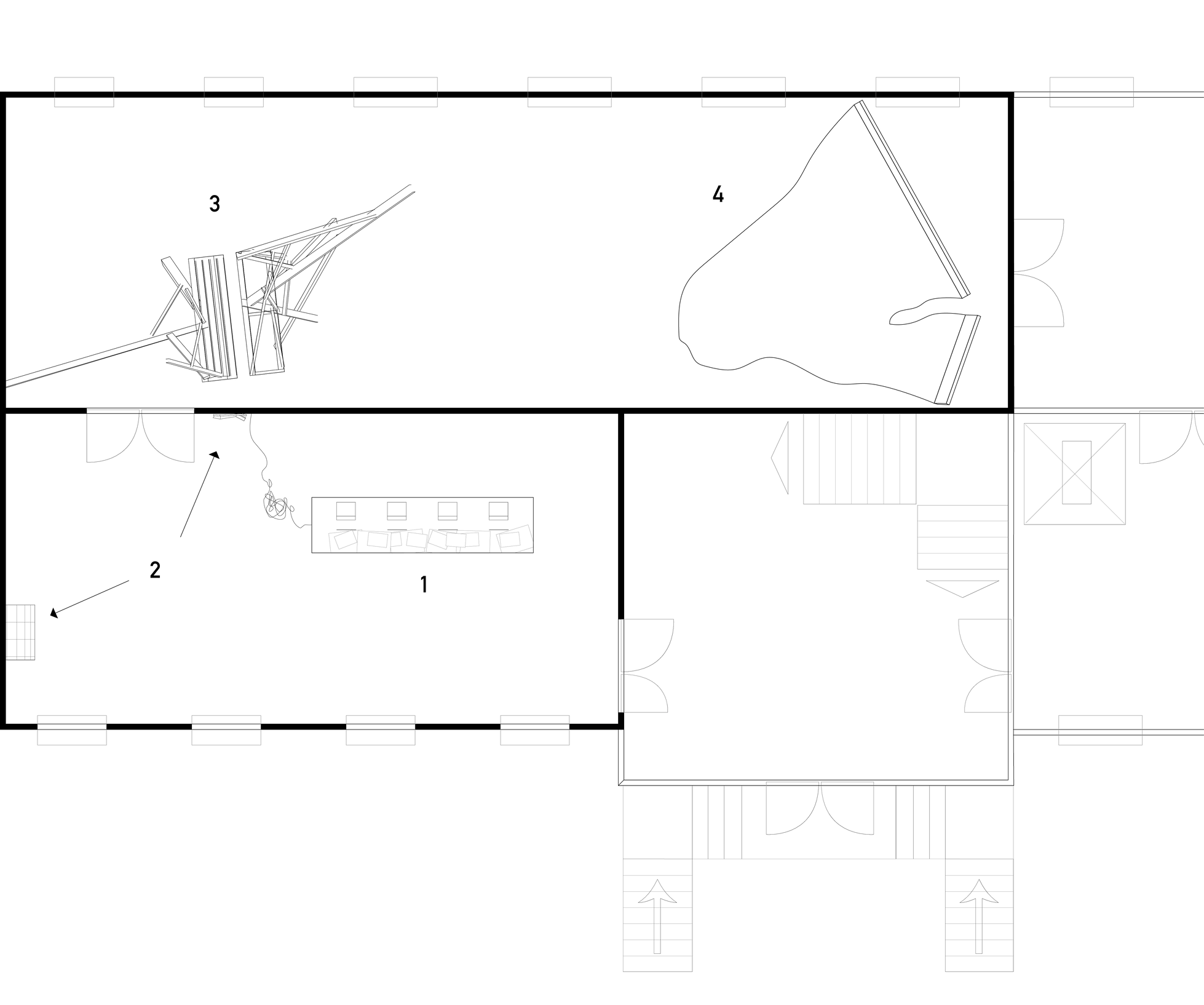 The final presentation in Tromsø Kunstforening comprises a body of work that can be grouped into 4 sections – as outlined on the floor plan. These groups are collections of individual works that are related. The following is a list of those groups of works.