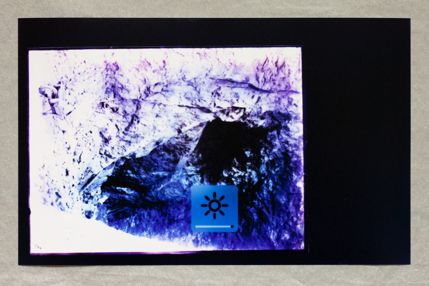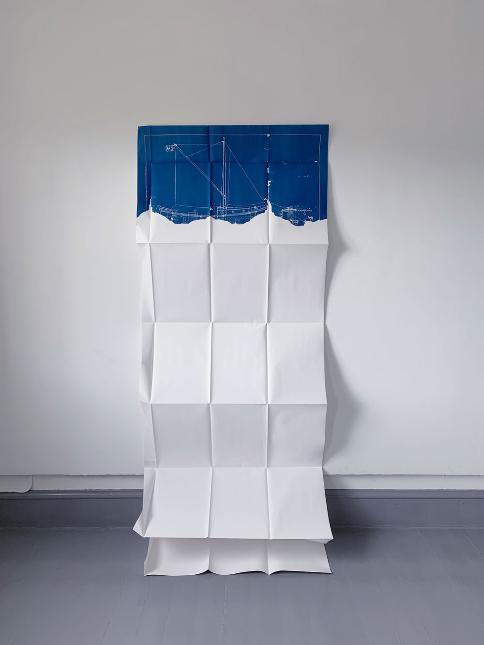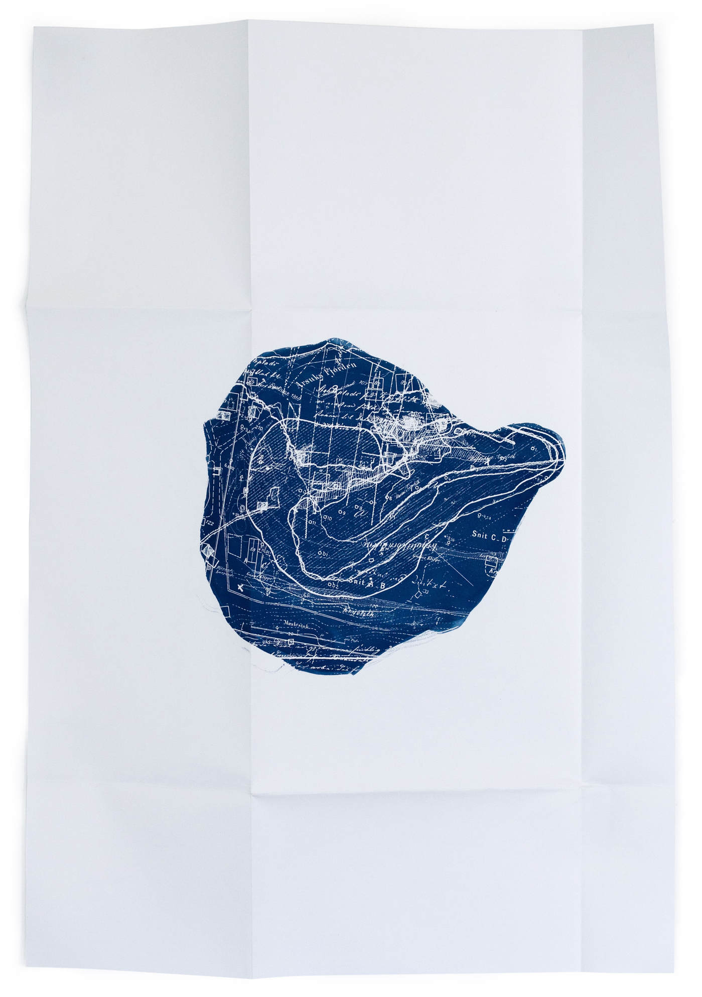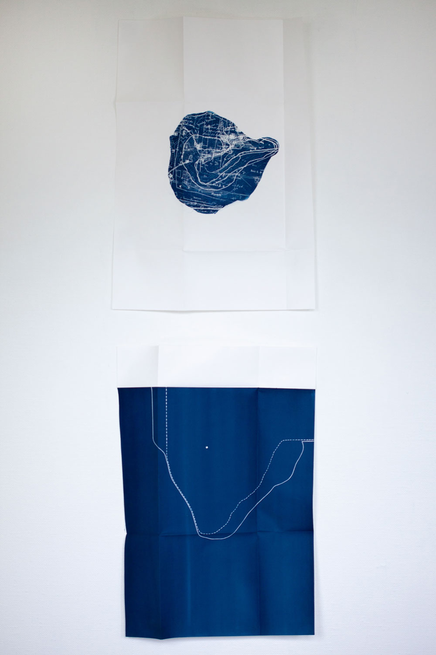 cyanotype on 160 gr. seawhite. Dimensions: 594 x 841 mm, folded to fit A3