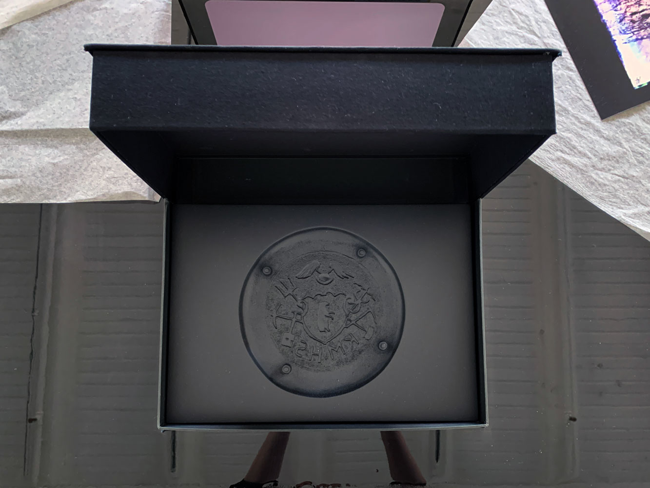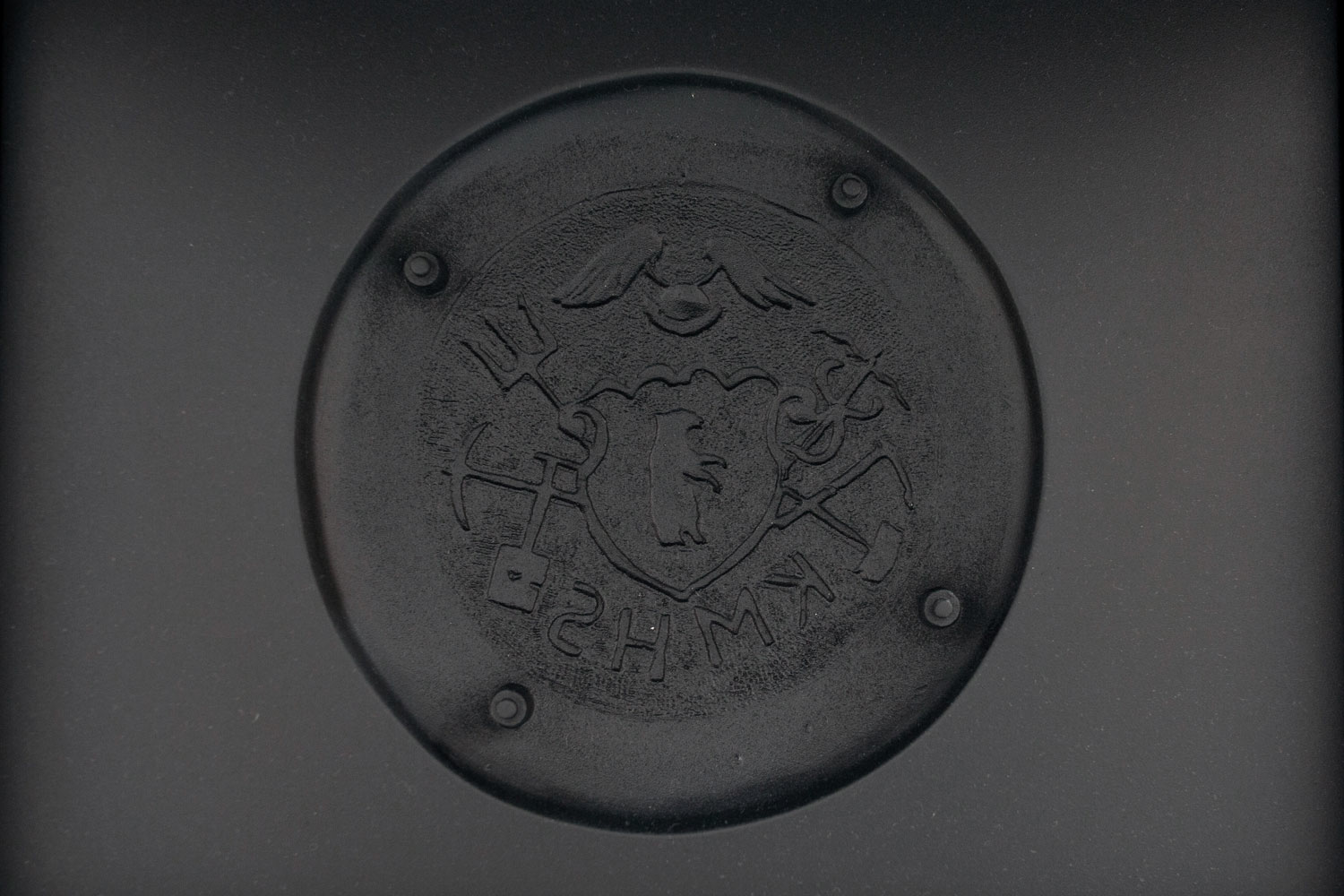 Seawhite archival box w. cast of 3d-printed replica of brass sign from Ivittuut auctioned on lauritz.com. Dimensions: 35 x 25 x 25 cm