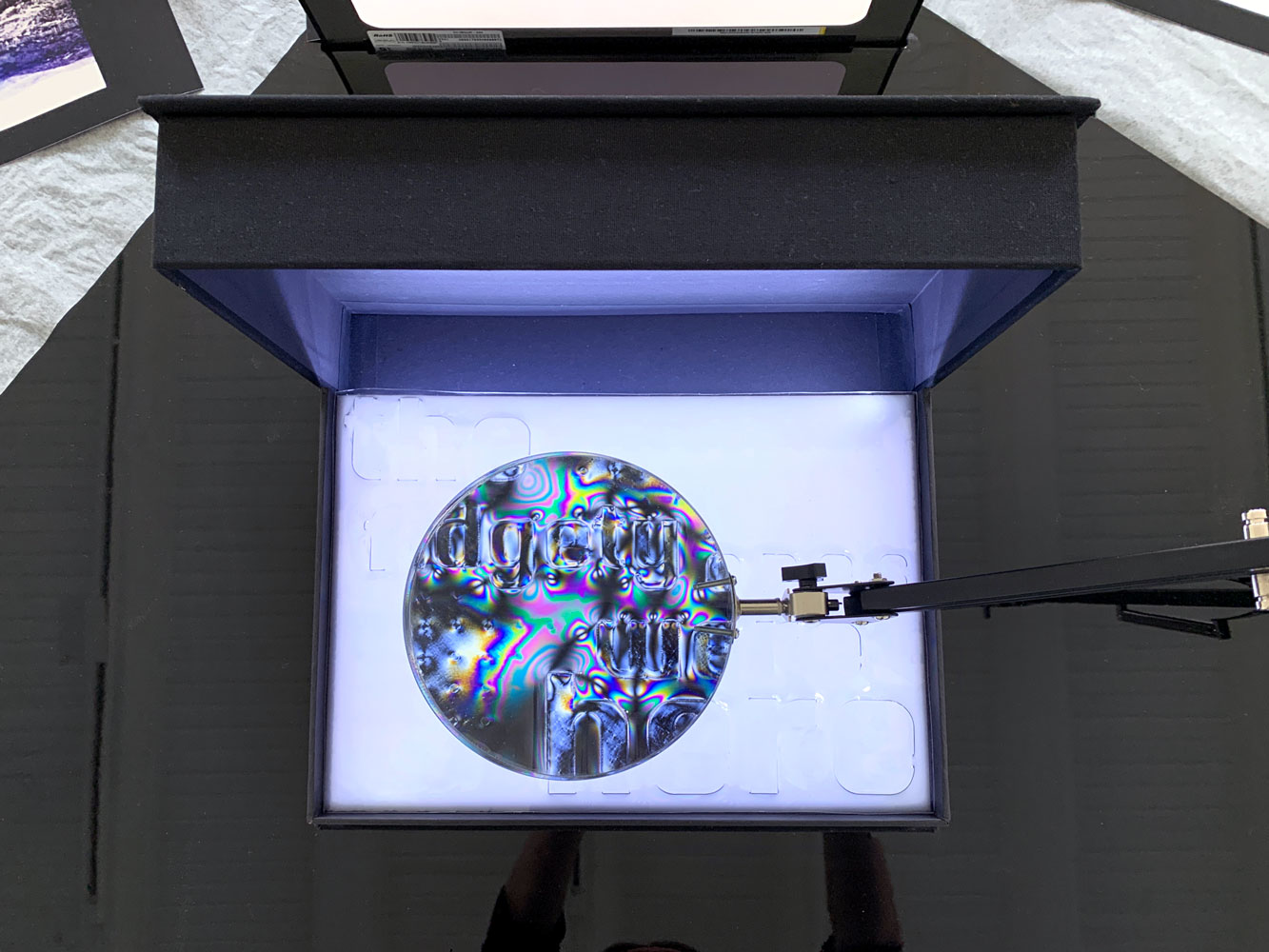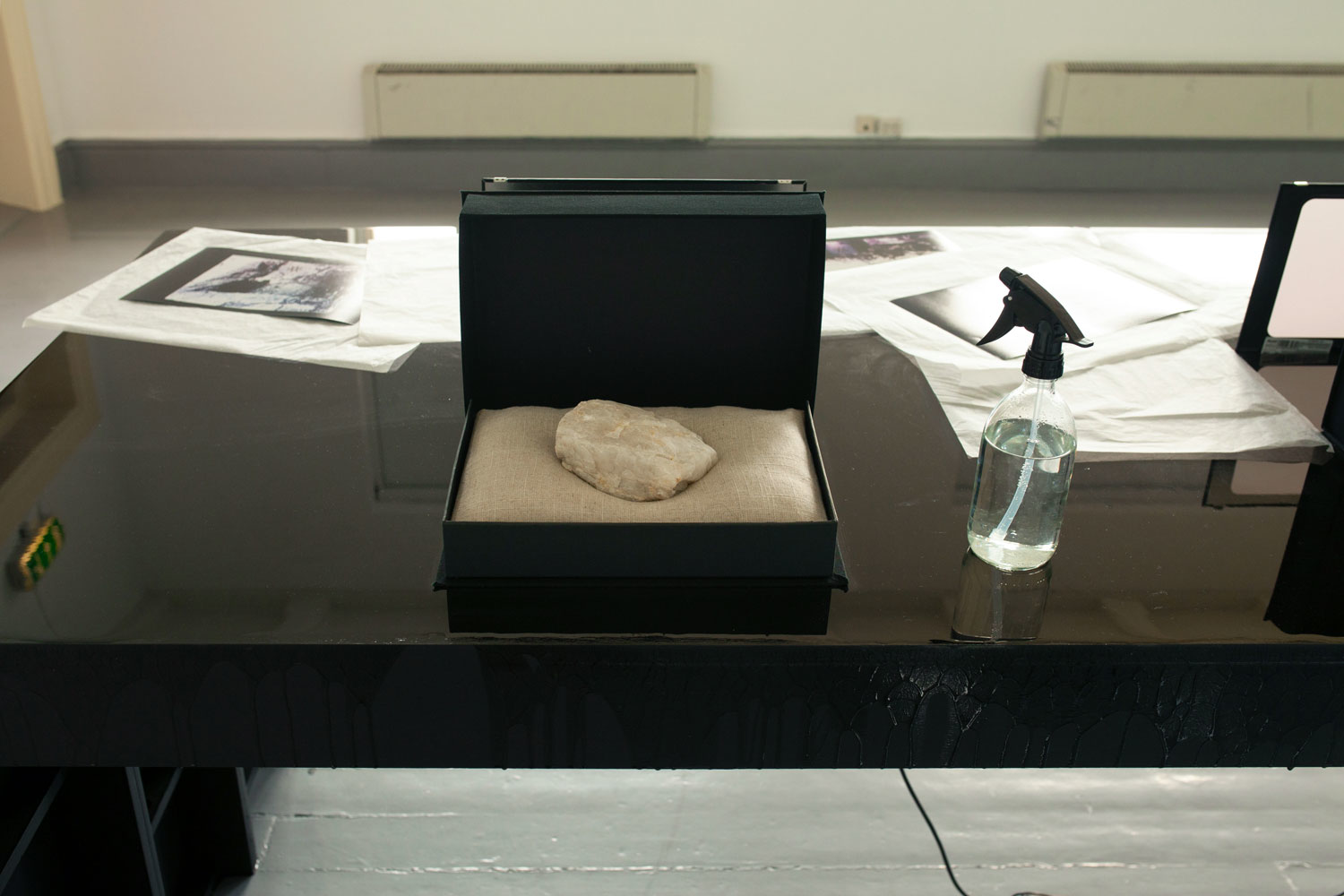 Seawhite archival box w. polarising thin films and traces of Nakasuk's account of stone spirits. Dimensions: 50 x 25 x 40 cm