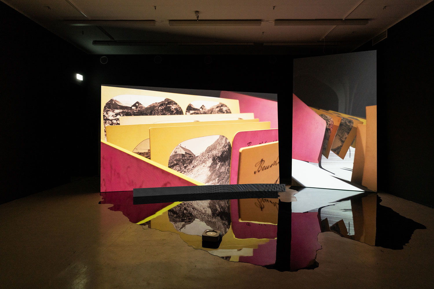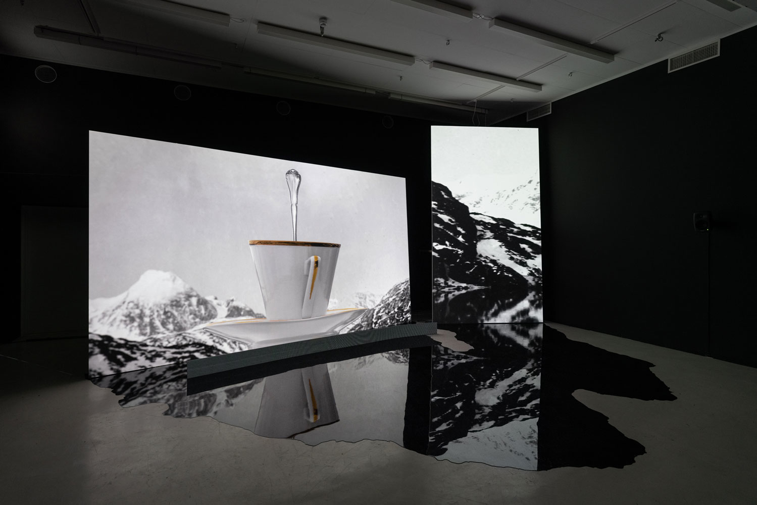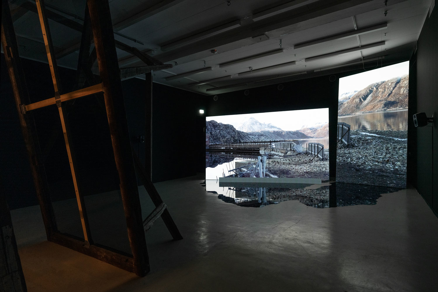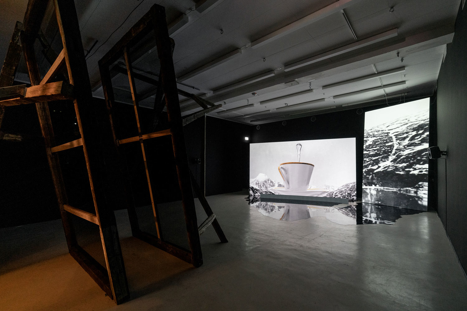 This exposition conveys the final results of Anne Haaning's artistic research project Half Hidden, which she has been conducting as a PhD Candidate with Oslo National Academy of the Arts in collaboration with the Academy of Arts, UiT The Arctic University of Norway and the Norwegian Artistic Research Programme. Through the prism of the mineral cryolite, extracted from Greenland by Denmark in the years 1857–1985, the project seeks to uncover hidden structures and histories imbedded in technology. It has done so by exploring analogical correspondences at a specific intersection of technology, myth and colonialism; the method it employs to this end is an investigation of the ontological context of digital image production. Denmark extracted the rare mineral cryolite in Greenland between the mid nineteenth and the late twentieth centuries. Essential to the mass production of aluminium, cryolite proved critical for the shipbuilding and aviation industries during World Wars I and II. The mineral was so important that the cryolite mine was put under US administration during the German occupation of Denmark in World War II. But this history has been virtually erased from the collective memory and consciousness of the Danes. Today, the flooded mine is a scar in the Greenlandic landscape covered by a pervasive mirroring water plane concealing a significant part of the Danish-Greenlandic colonial history.