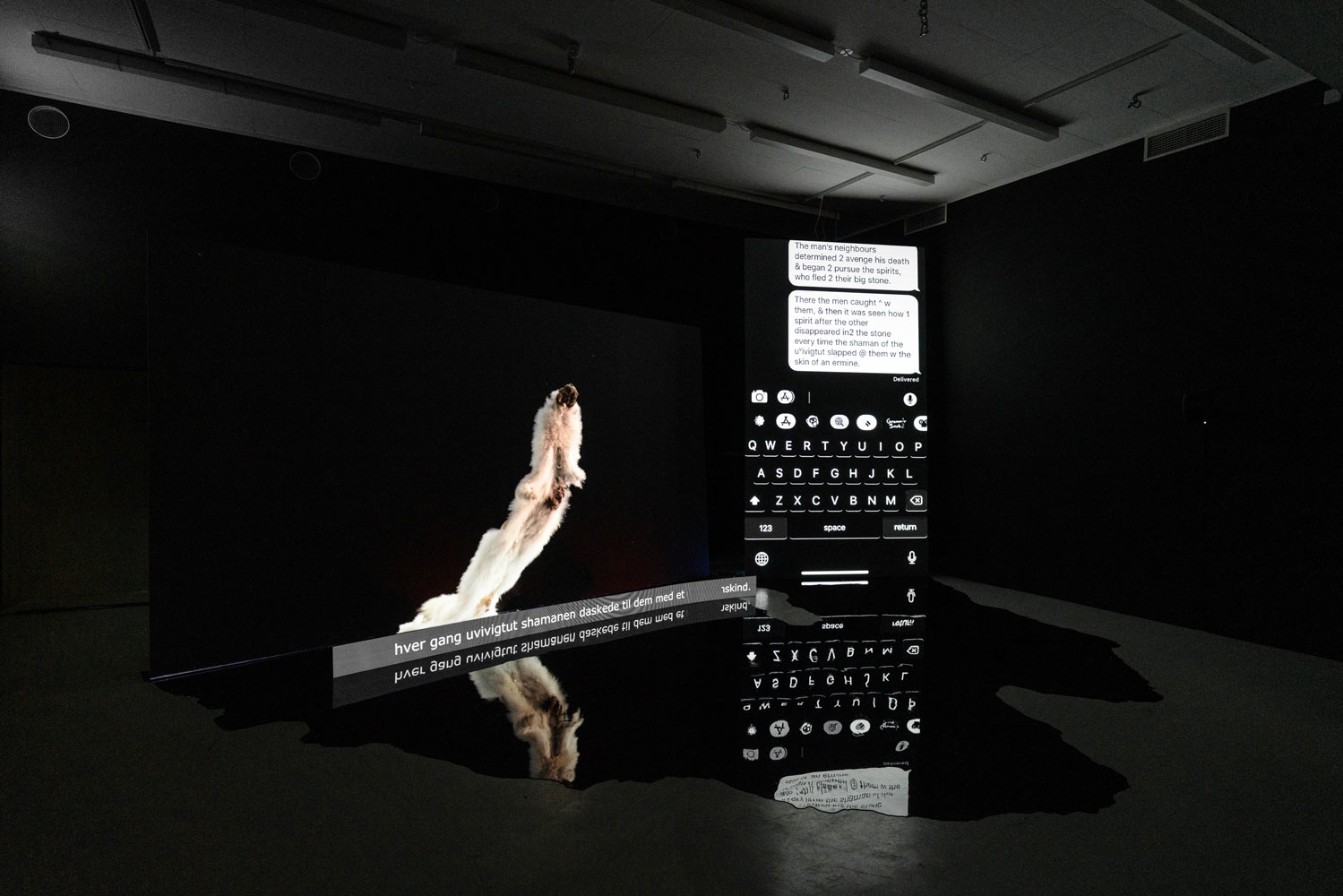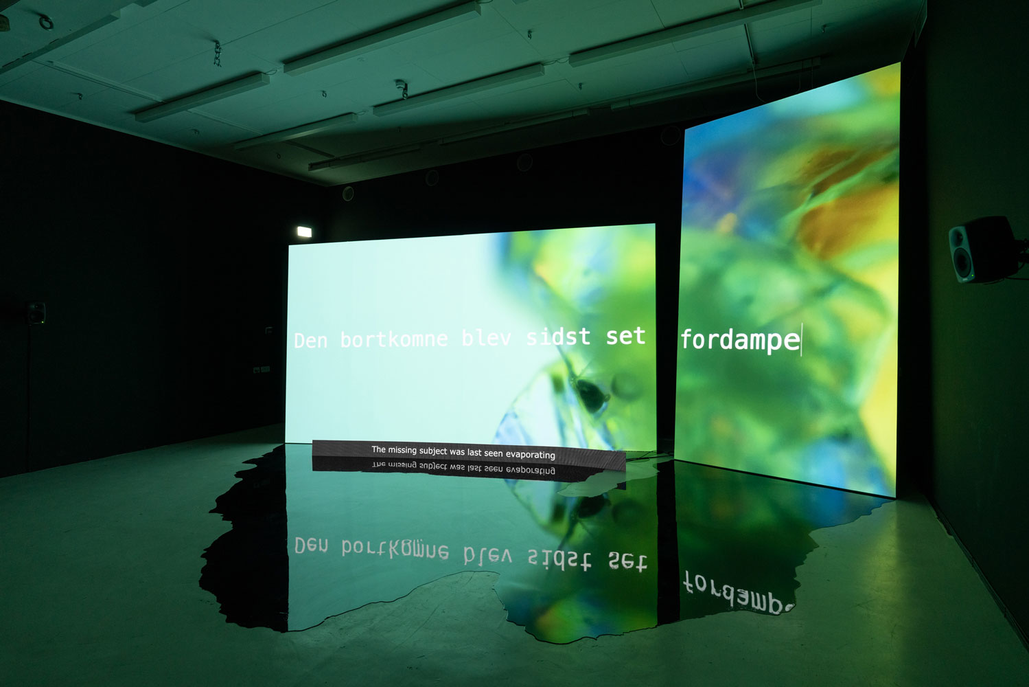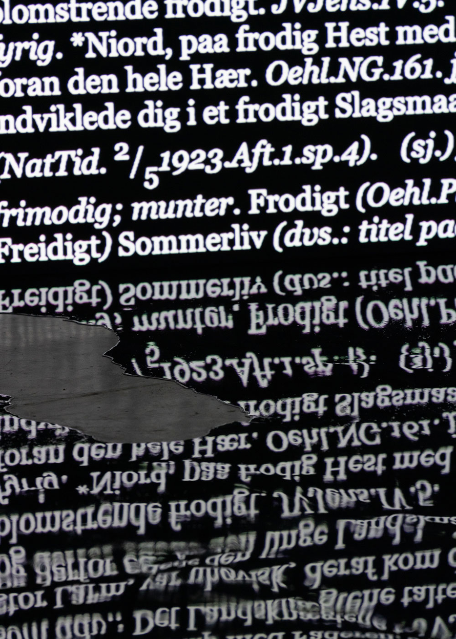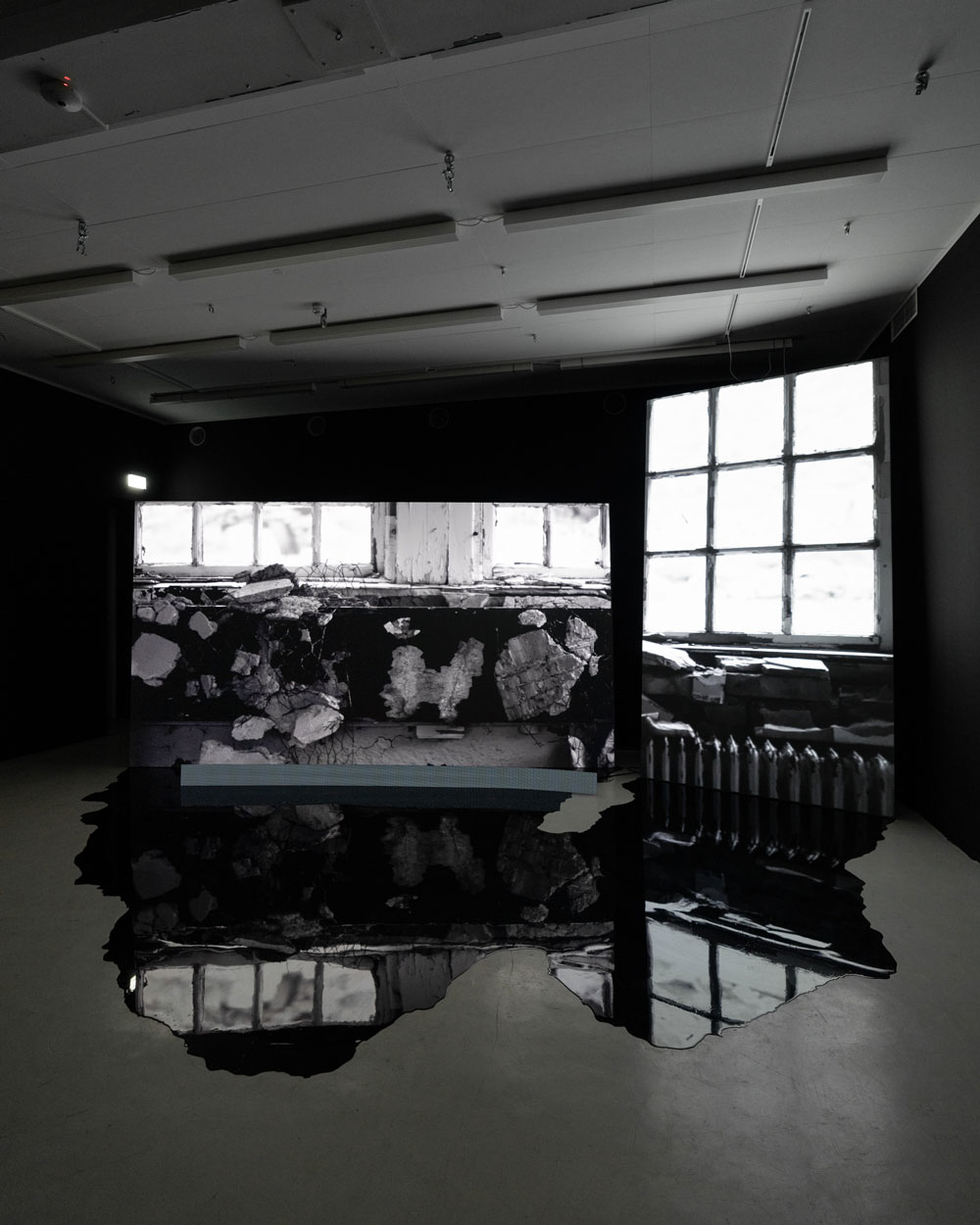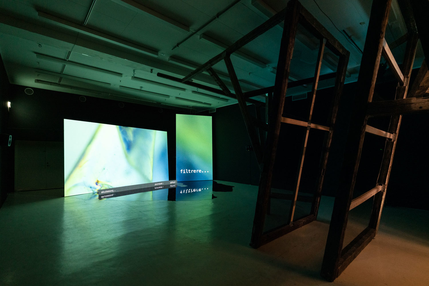 This exposition conveys the final results of Anne Haaning's artistic research project Half Hidden, which she has been conducting as a PhD Candidate with Oslo National Academy of the Arts in collaboration with the Academy of Arts, UiT The Arctic University of Norway and the Norwegian Artistic Research Programme. Through the prism of the mineral cryolite, extracted from Greenland by Denmark in the years 1857–1985, the project seeks to uncover hidden structures and histories imbedded in technology. It has done so by exploring analogical correspondences at a specific intersection of technology, myth and colonialism; the method it employs to this end is an investigation of the ontological context of digital image production. Denmark extracted the rare mineral cryolite in Greenland between the mid nineteenth and the late twentieth centuries. Essential to the mass production of aluminium, cryolite proved critical for the shipbuilding and aviation industries during World Wars I and II. The mineral was so important that the cryolite mine was put under US administration during the German occupation of Denmark in World War II. But this history has been virtually erased from the collective memory and consciousness of the Danes. Today, the flooded mine is a scar in the Greenlandic landscape covered by a pervasive mirroring water plane concealing a significant part of the Danish-Greenlandic colonial history.