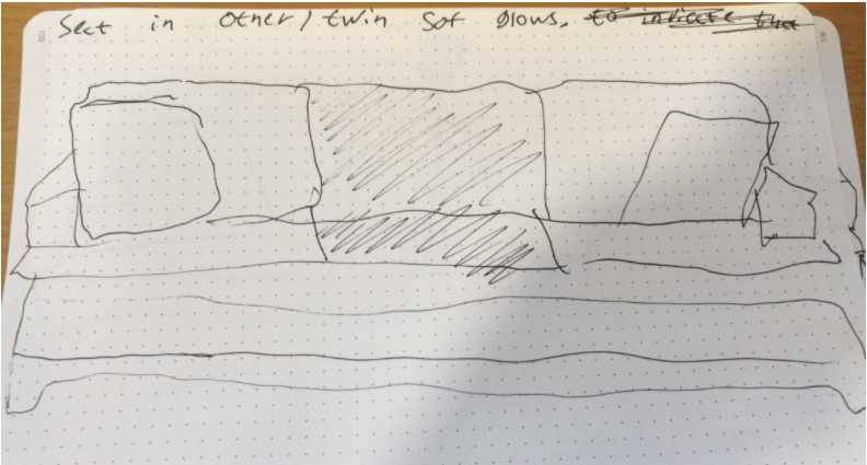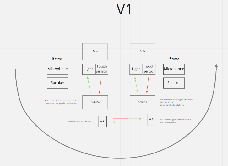 Pillow/Social Sofa that makes people feel less alone and more connected trough lights and sensors and communication with twin sofa/pillow. The users interact with the sketch/prototype/project by interacting with the pillow. this coud through eigther sitting on it laying on it or just holding or hugging it. Then the "Twin/other" pillow will light up/glow when somone is sitting in both sofas. Possible to communicate with person in other sofa through verbal communication.