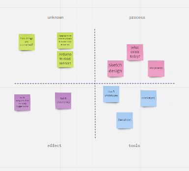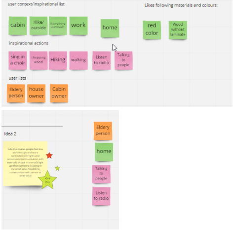 2: Ideation and brainstorming with different gamestorming methods: Next we used the Knowledge we had gained in the interviews to conduct some ideation methods. These included Methods from the Gamestorming book like "Post it-poker". And just general drawing and trying to come up with an idea. we ended up with 3 and selected 1. This one. then we continued brainstorming around that idea until coming up with this idea. We also used a method called "State of the art" in order to se what other products exist in this space today.