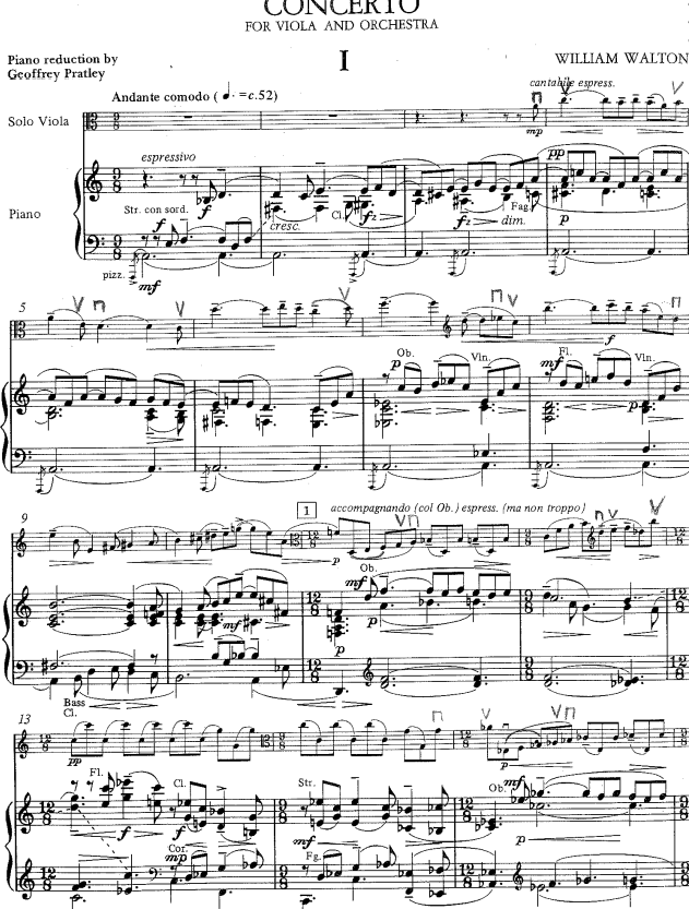 Examples 1 and 2. William Walton, Concerto for viola and orchestra, edited by Oxford University Press, 1st movement, bars 1-231.