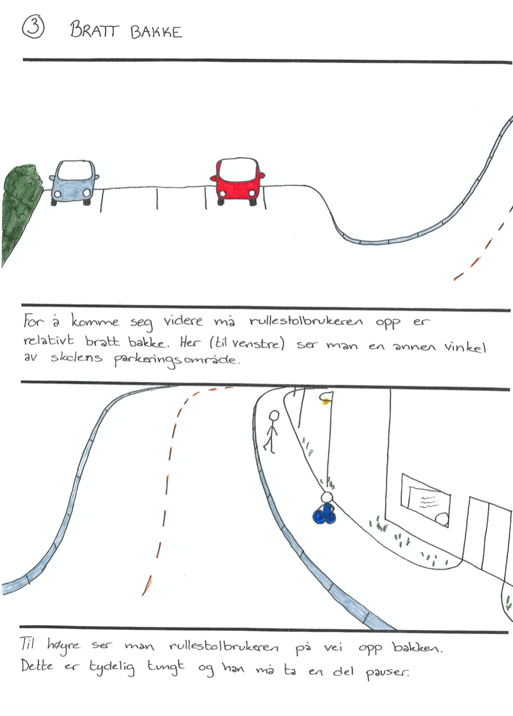Ferdig storyboard som prototype. Her med forklaring på bildene for en mer helhetlig følelse av hvordan videoen skulle vært:
