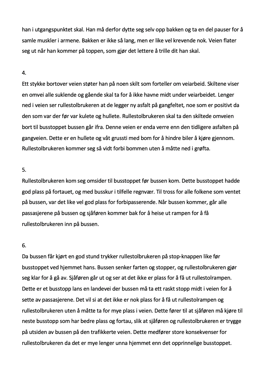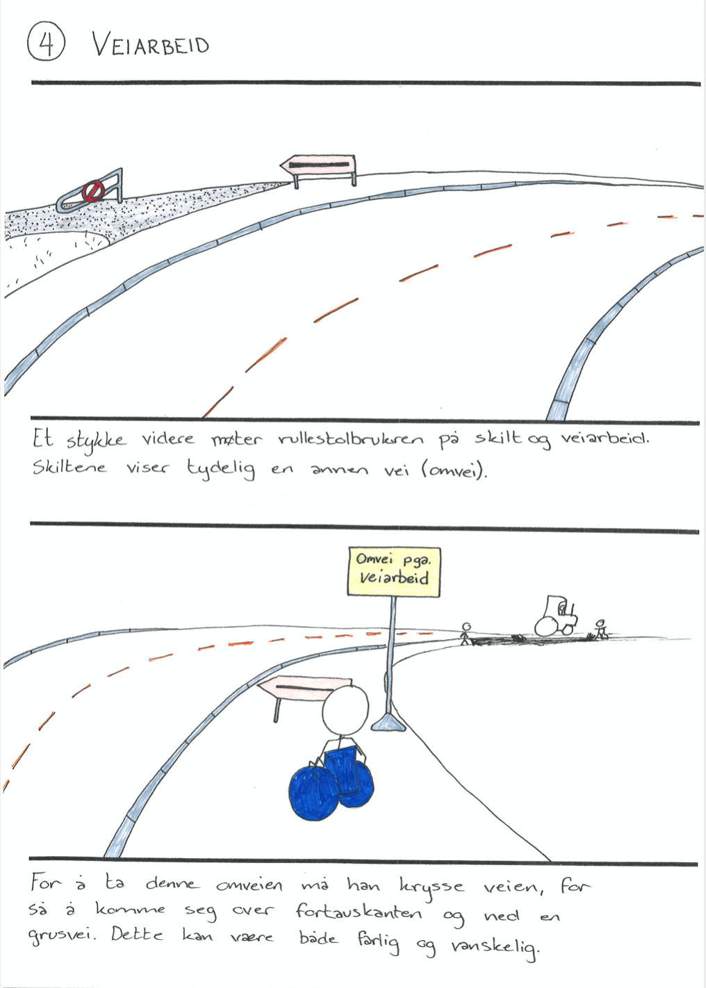 Interaksjonen med prototypen fungerer ved at brukerene ser for seg hvordan dett ville være å stå i situasjonen. Med utgangspunkt i at prototypen hadde vært en fungerende video ville mottakeren brukt VR-briller for å selv være plassert i situasjonen og få et innblikk i hverdanen til en person i rullestol. Mottakeren med VR-brillene vil sitte/stå å se på hendelsesforløpet. Personen skal da kunne snu på hodet og se seg rundt for å se omgivelsene han/hun/hen befinner seg i. Da vil prototypen lyse opp kunnskapsmessig for mottakeren, og mottakeren ville forhåpentligvis blitt følelsesmessig preget av å være så nær noen i vanskelige situasjoner som fort kan skje i personens hverdag.