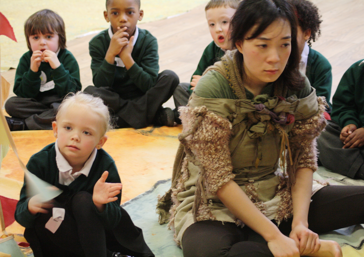 Nori was a collaboration between Theatre-in-Education companies, with just one Korean actor-teacher and one UK actor-teacher. It was actually modelled on an old Coventry Belgrade participatory TIE piece for infants called Pow Wow, which was about a cowboy and ‘Indian’, in which very young children are tasked with building a bridge between cultures. Nori took the same concept, with an old woman and an undersea creature. It did not tour in both countries in the same way, in that it was created with UK artists alongside Koreans in Korea, but only performed in Birmingham, working with The Play House TIE team. The age range of the audience was 3-6, so it was aimed at a much younger audience. I was the only member of the Orange Polar Bear team involved in Nori, and so I suppose its principle contribution to the story we are telling here was in the continuing development of my own understanding of working collaboratively with a Korean team, and of the ways of using a language which was not understood by any of its audience within an early years setting. For me the principal ‘lesson’ that emerged from the experience was that the ‘barrier’ of a foreign language matters least of all for the youngest of us. Perhaps because very young children are more adept at interpreting the meaning of physical languages, and more accustomed to interpreting words without knowing their meaning, there was no evidence of children switching off or turning away from the creature that spoke underwater language. Instead they worked very hard to find ways of communicating. Perhaps that was another outcome, actually, reinforcing the point about how fundamental the urge to communicate across these barriers is to us all.