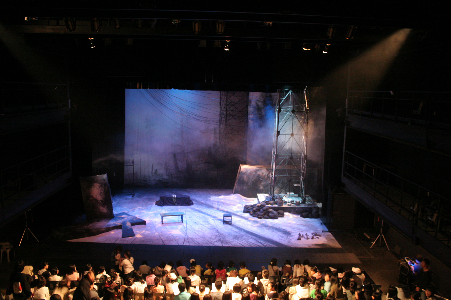 PWW: Well, it was the hardest part of the whole process actually, for me at least. The problem of the audience understanding the language was not there of course, but it was replaced by a greater problem of staging a piece which was all about these two people in entirely different worlds, and the links between them. With all parts played by Koreans, a crucial dimension of the project was not there. The story and characters and structure and themes of the play were all given a chance to be examined, and the audience really seemed to enjoy the play, but the central fact of the two groups of artists visibly collaborating was missing. But more important than the flaw in the version artistically, the balance of the creative teams was not there. I was there as co-director with the designer, Yeo Shin Dong, and was the only British artist involved in the rehearsal process. The Korean writer was there, but Evan was unable to attend except for the performance. It was an absolutely beautiful production, and there was also now an original music score, which was lovely, but the directing relationship never really worked – it was extremely hard for me to play a valuable role in an otherwise all-Korean process. It served in a way to show the real value of the consciously balanced working method that we had used at all other stages of the project.