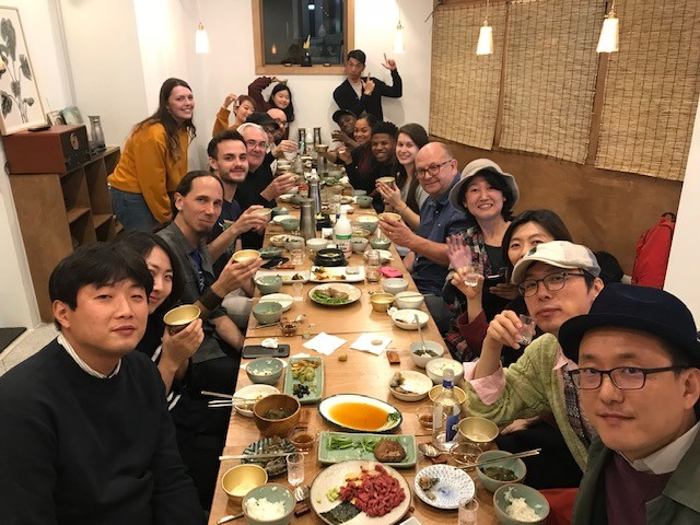 Key partners at the beginning of this project - left to right Peter Wynne-Willson of BCU and Hanyong Theatre, writers Ko Sun Duck and Evan Placey, and Professor Choi Young Ai of the Korean National University of the Arts, and the National Centre for Teenage Drama Research.