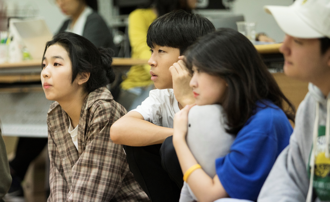 In her chapter about the Orange Polar Bear process, Professor Choi Young Ai examines the specific Korean concept of 'Jung I Byeong' - which literally means 'Year 9 disease' - 'the social characteristics of 14-15 year olds in Korea, which include rapid physical changes, emotional turmoil and heirarchical power relationships between peers' [Choi 2017, p. 41] This very Korean concept was a starting point for the exploration with the teenagers in both countries, and through extended drama and other exercises, a detailed picture was built up of the similarities and differences between the lives and issues of 14-15 year olds in the UK and Korea. Choi goes on to explore the way that taking part in the drama involving teenagers meeting each other and working together had particular value for their relationships, and their own self-understanding. This is reflected in the accounts of their involvement given by the UK group. But this same process was also an extremely rich source material for the writers of Orange Polar Bear, and the response of teenage audiences to the final play indicates that the whole project gained substantially from the depth of involvement of these young people, by reflecting closely the preoccupations and ideas expressed within these exploratory workshops. We have observed [in the page in this exposition around language] that the 'relatability' of the final piece was a crucial part in the level of engagement of young audiences both in Seoul and Birmingham, and this was achieved to a great extent by the committed and substantial involvement of these two groups.