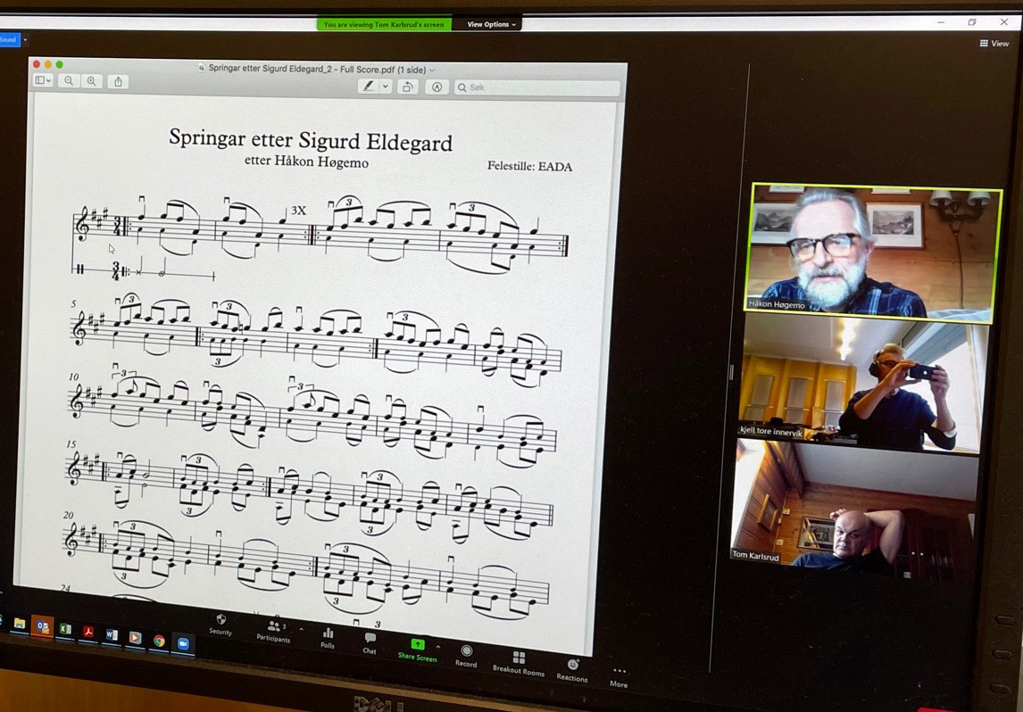 14.12.2020 Workshop in Lærdal. Documenting the Tunes. Audio and video in three angles. Multimedia aproach for learning the tunes. Left hand focus, right hand (bowing) and upper body, foot stomping patterns. More information than audio. For the use of musicians to learn the tunes. Liked to the scoring project.