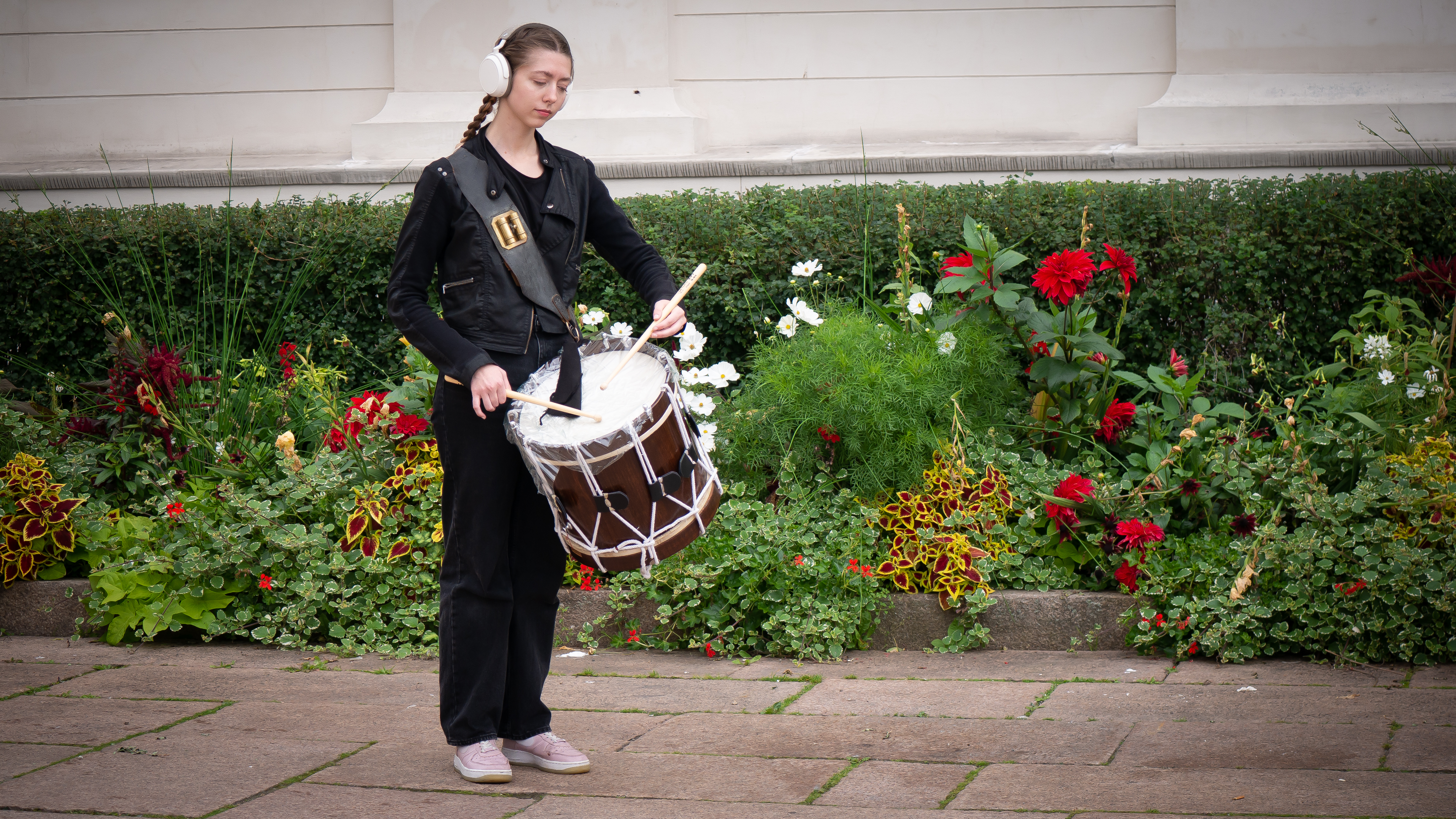 Traditional drumming as part of The BA corricculum** Jonas performed a solo drum version of “Storren”