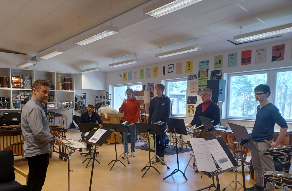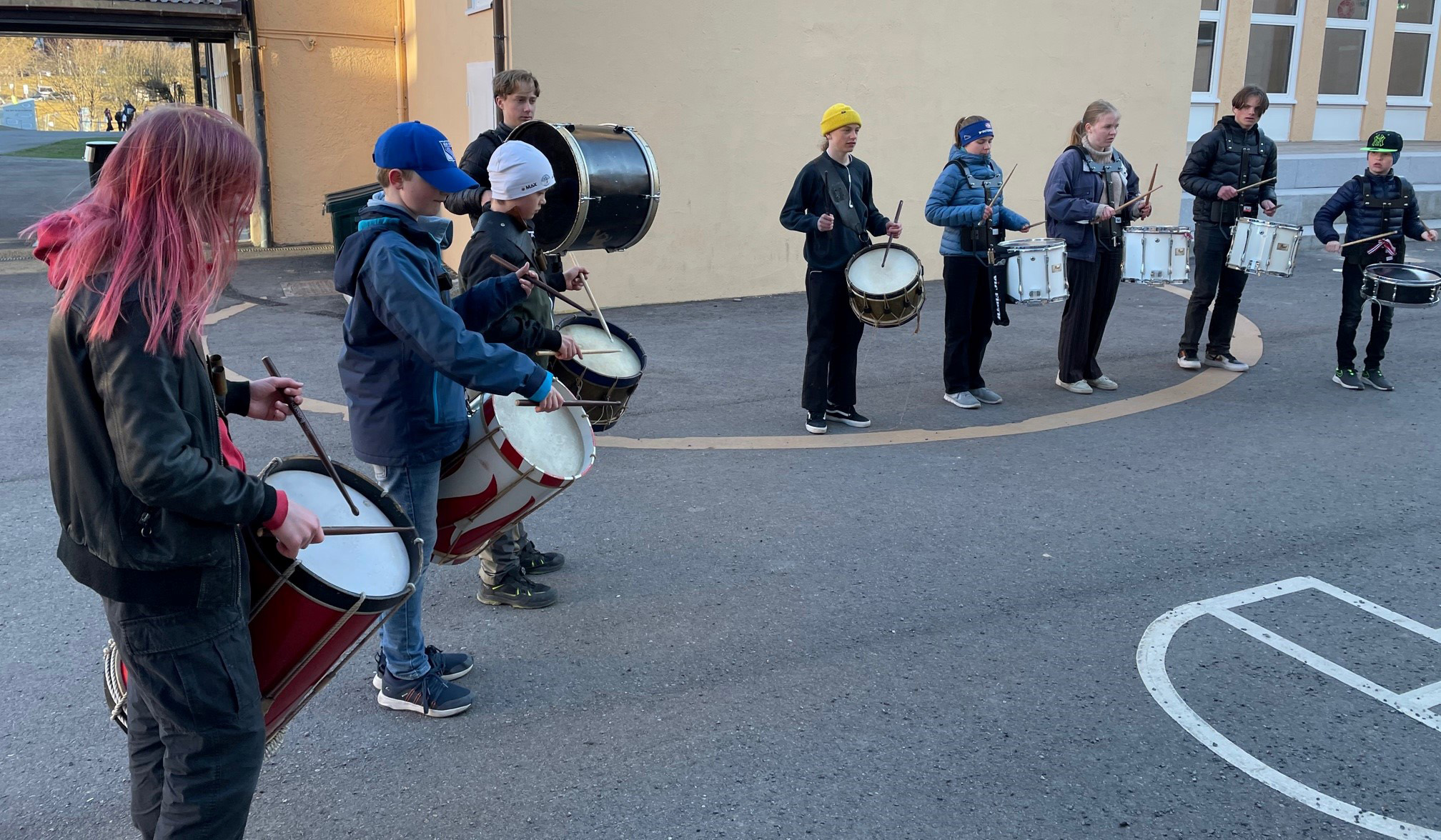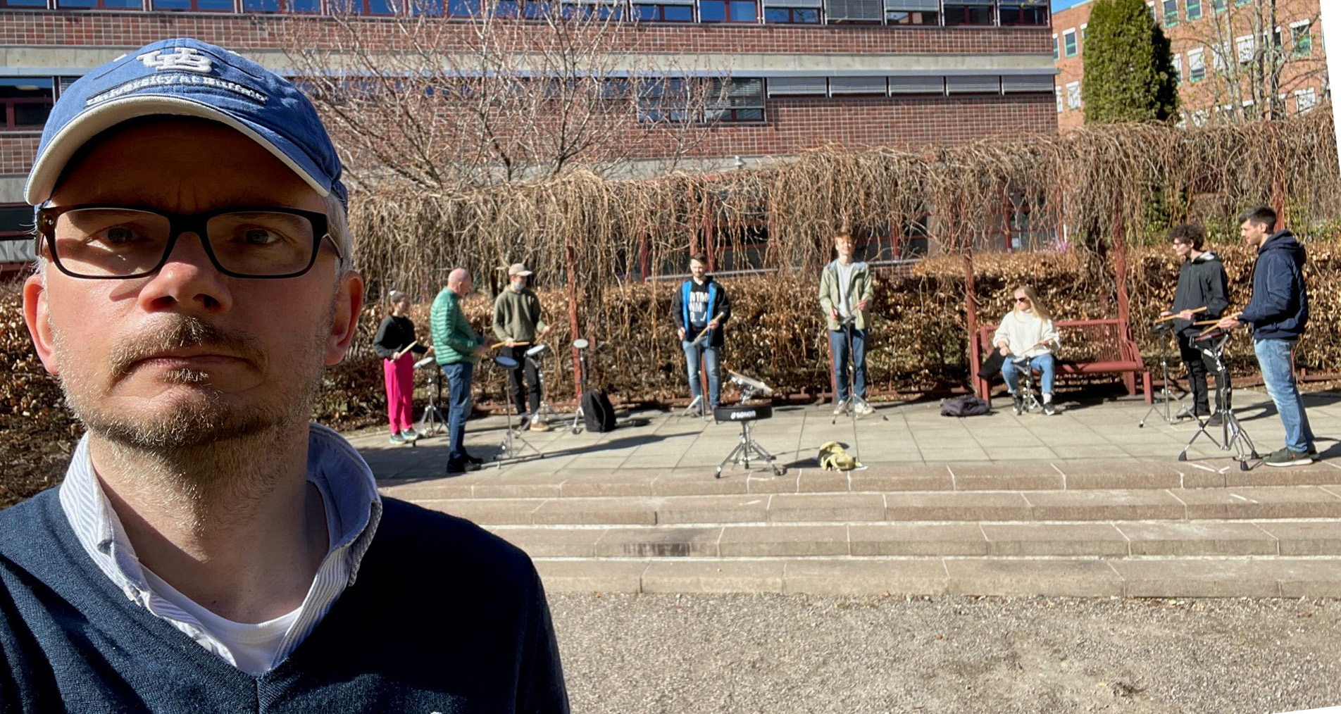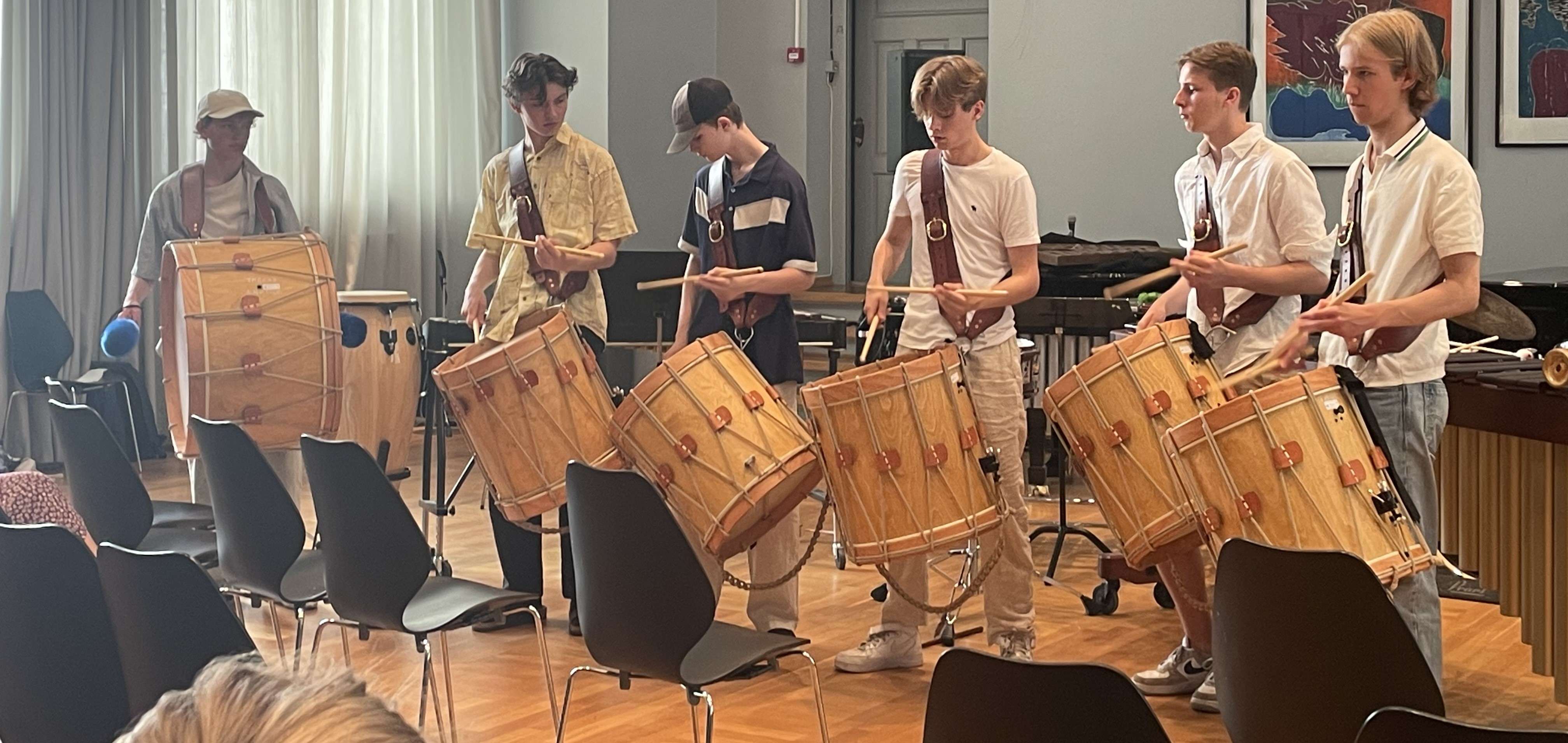 The percussion students at NMH. Traditionel drumming towards the 17th of May. A start. Cancelled halfway due to weather and Covid.