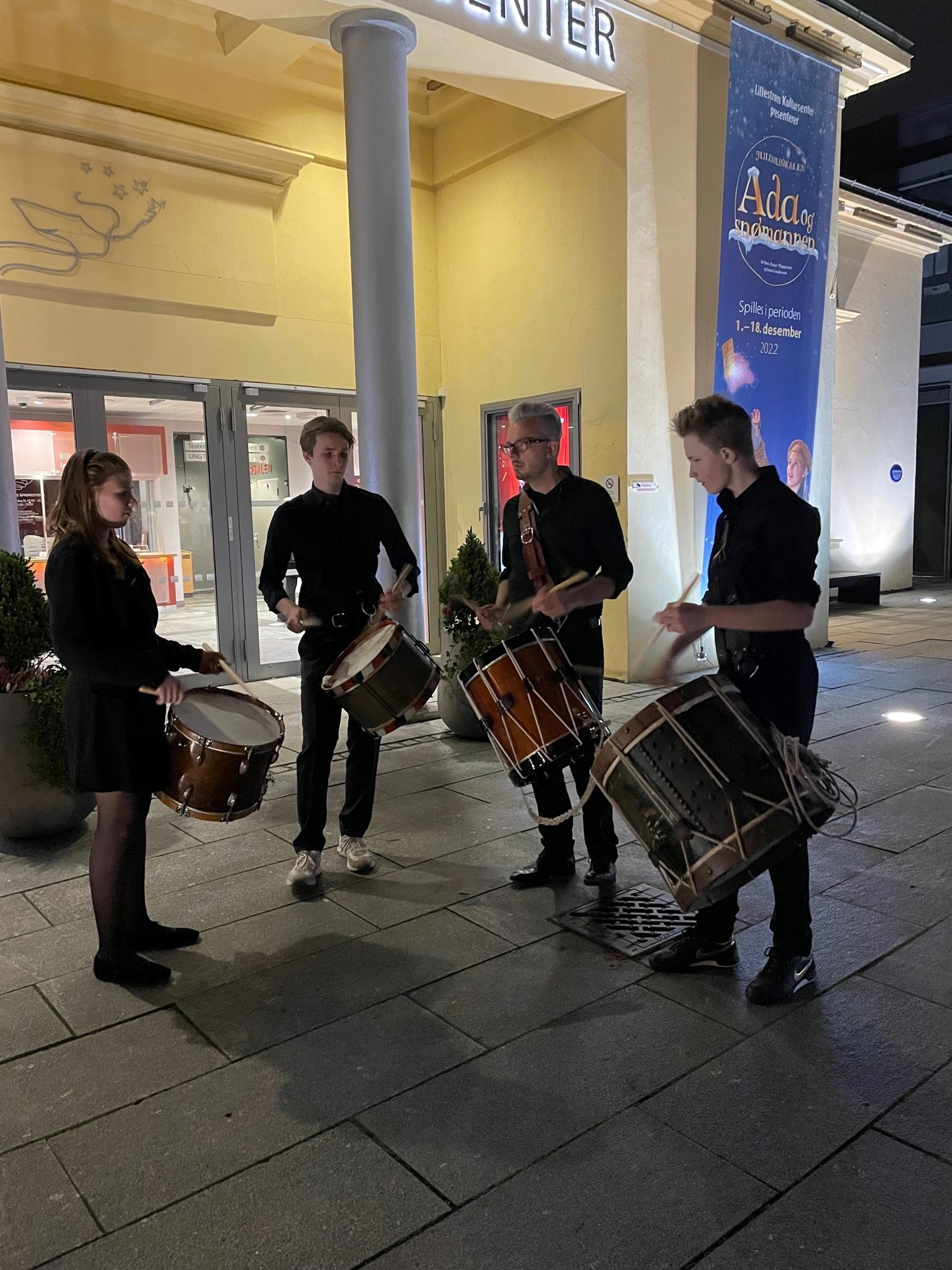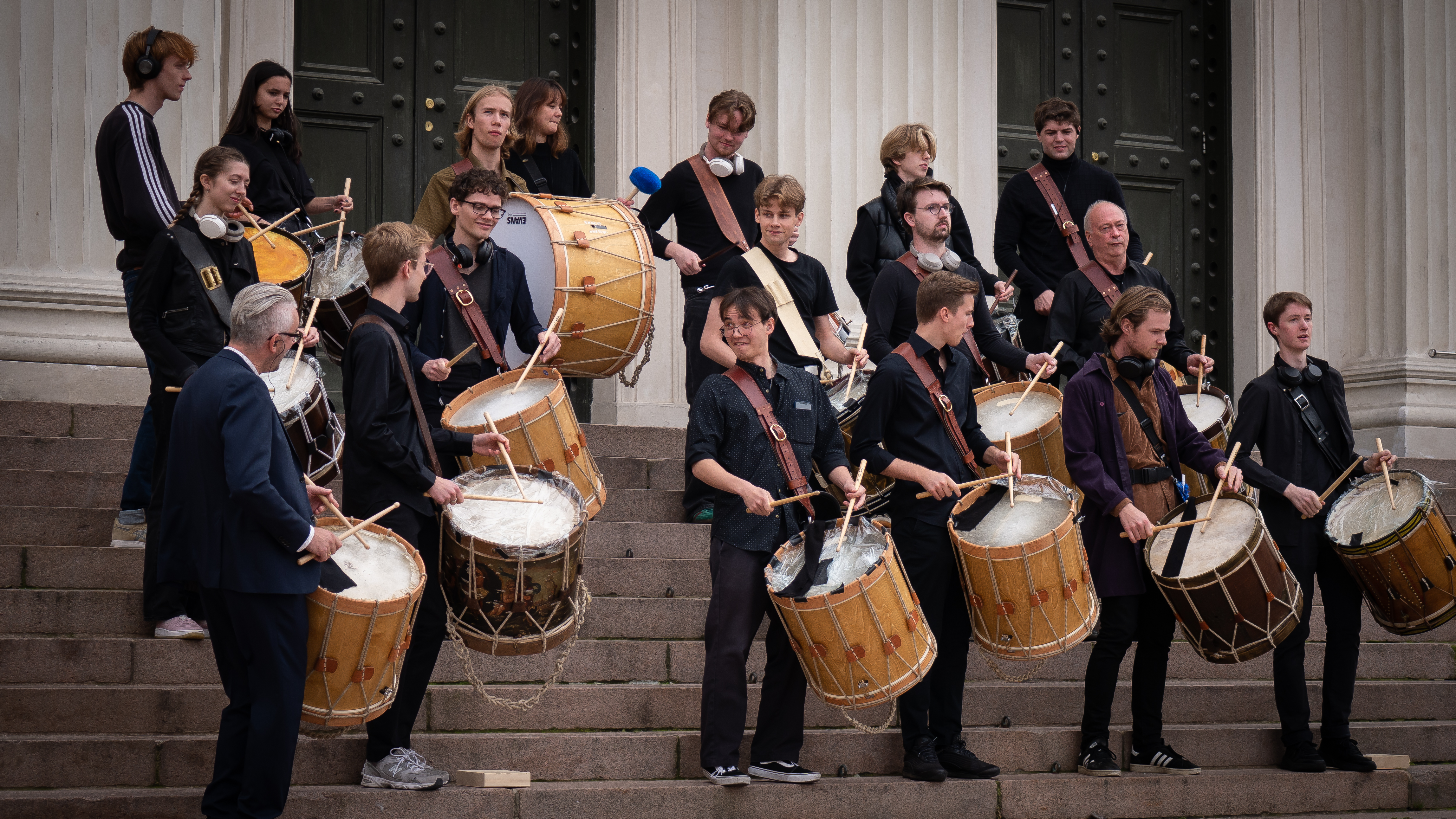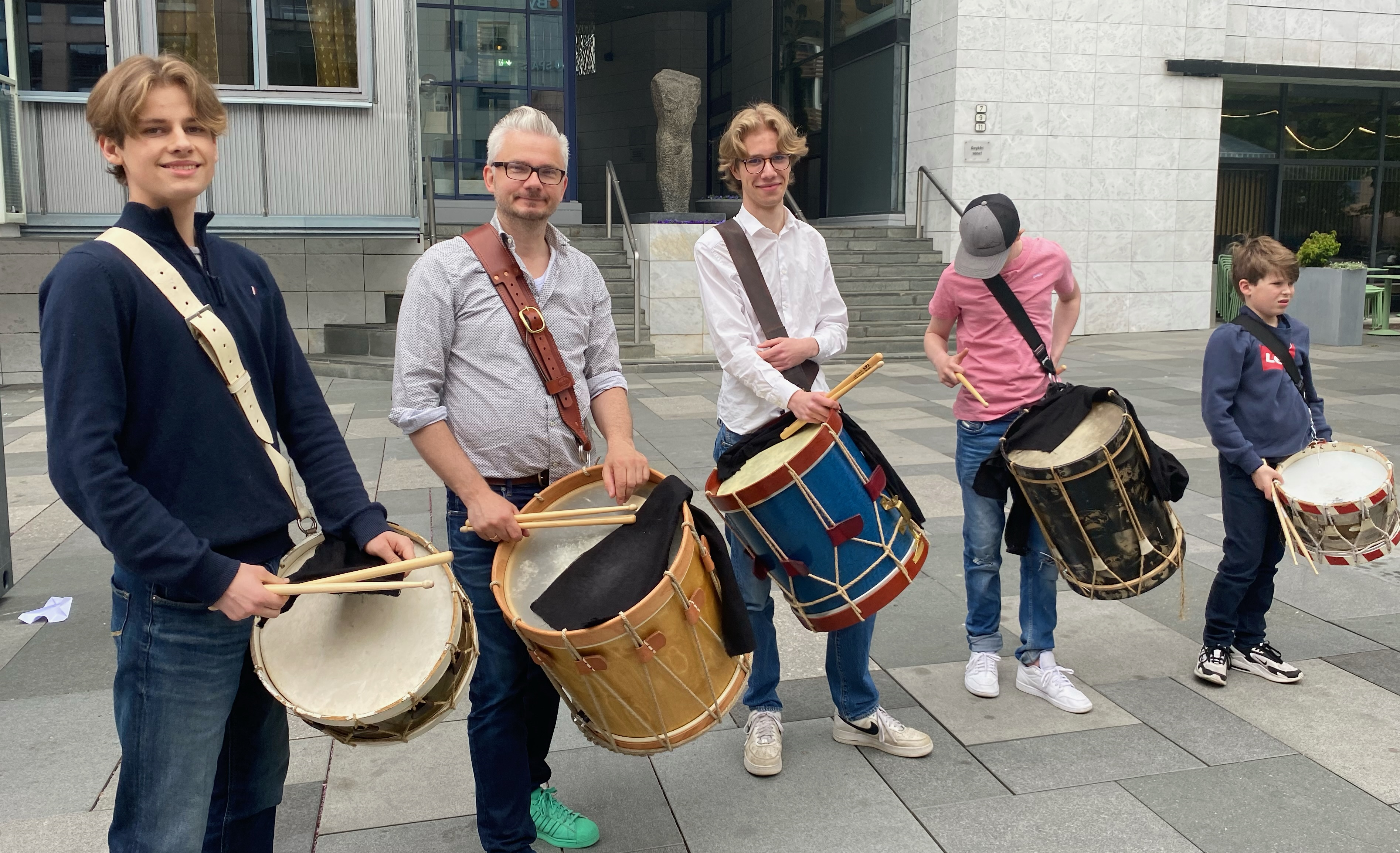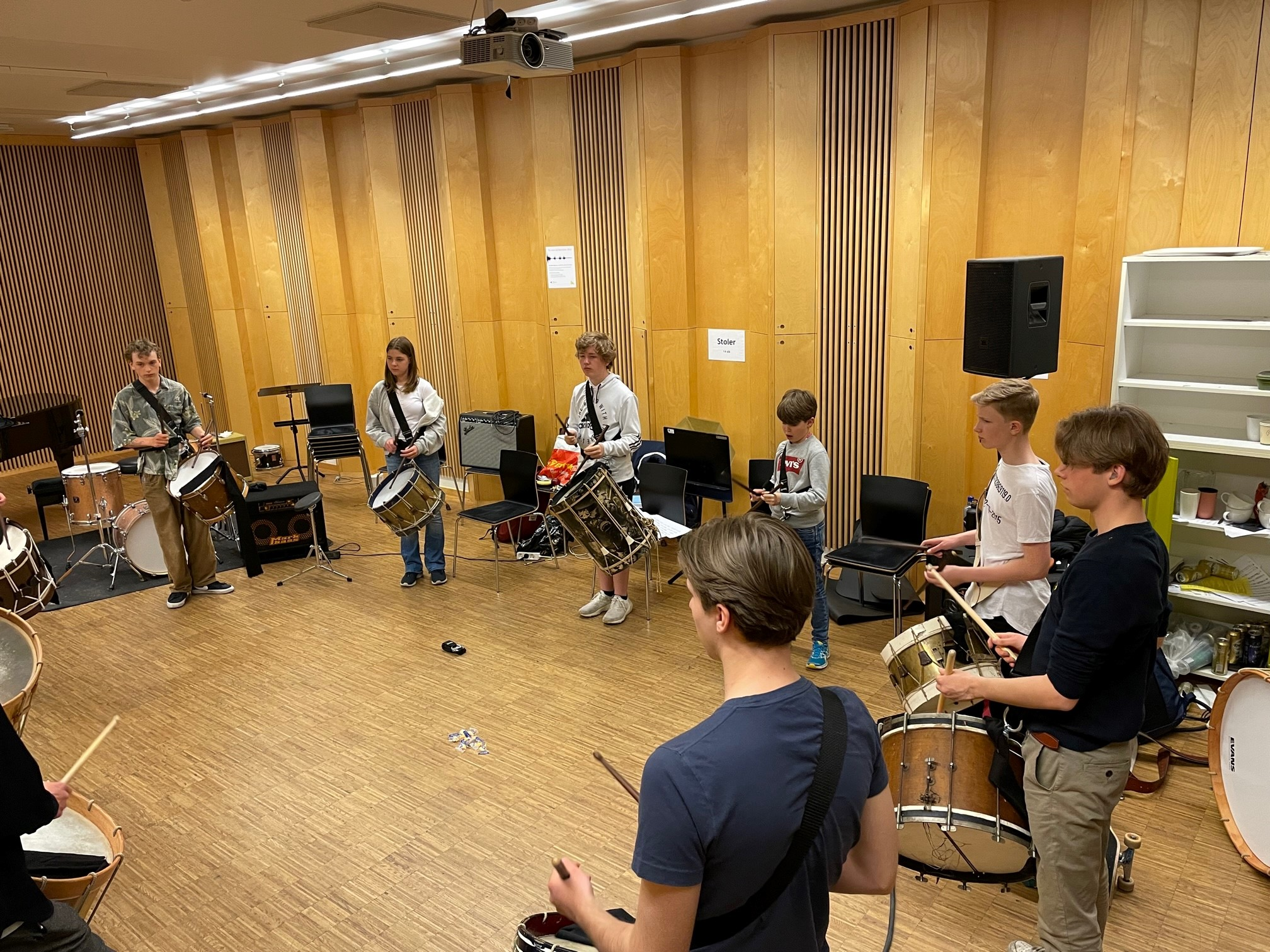 The percussion students at NMH. Traditionel drumming towards the 17th of May. A start. Cancelled halfway due to weather and Covid.