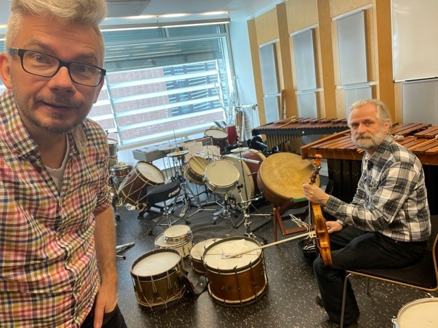 An online workshop with students from the percussion department at NMH.