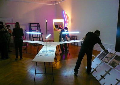 The following exposition contains three parallel parts: this, the body (which is the core material of the exposition); plus two margins... margin left (with thumbnails of referential works by us the authors, as well as related online links); and margin right (with the selection of referenced passages, all appearing in the order drawn from Walter Benjamin’s The Arcades Project). These three parts of the exposition are set to deliberately draw your attention, to interrupt the body, and indirectly draw you to the form of the trialogue we here propose.