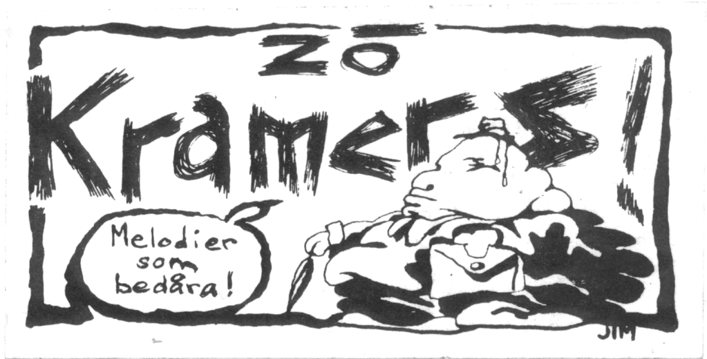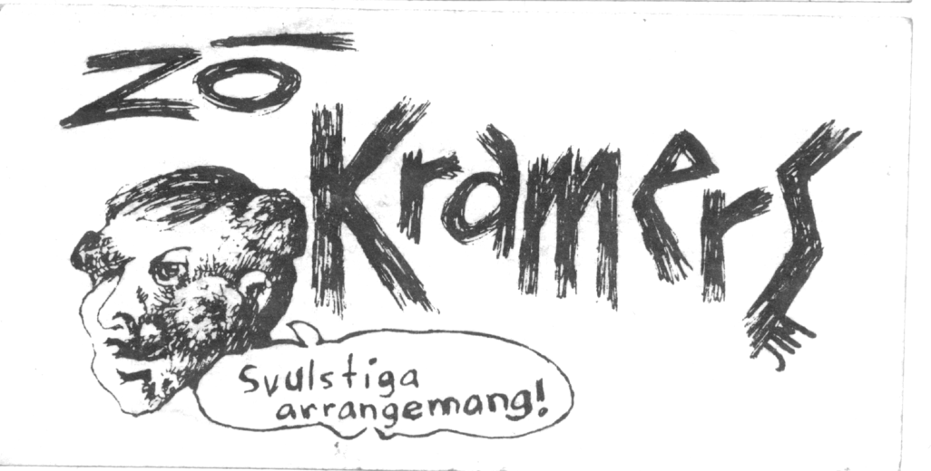 The band's first name was "Arne & his anabolic steroids". The name "Zö Kramers" comes from Kramer-Pollnow's hyperkinetic syndrome - (dance disease) a psychotic condition characteristic of the band's dance-inspired style. Between 1978-1983, about forty songs were written. About twenty concerts were mostly held on Lidingö. The band's biggest "hit" was Tyska marionetter (German puppets).