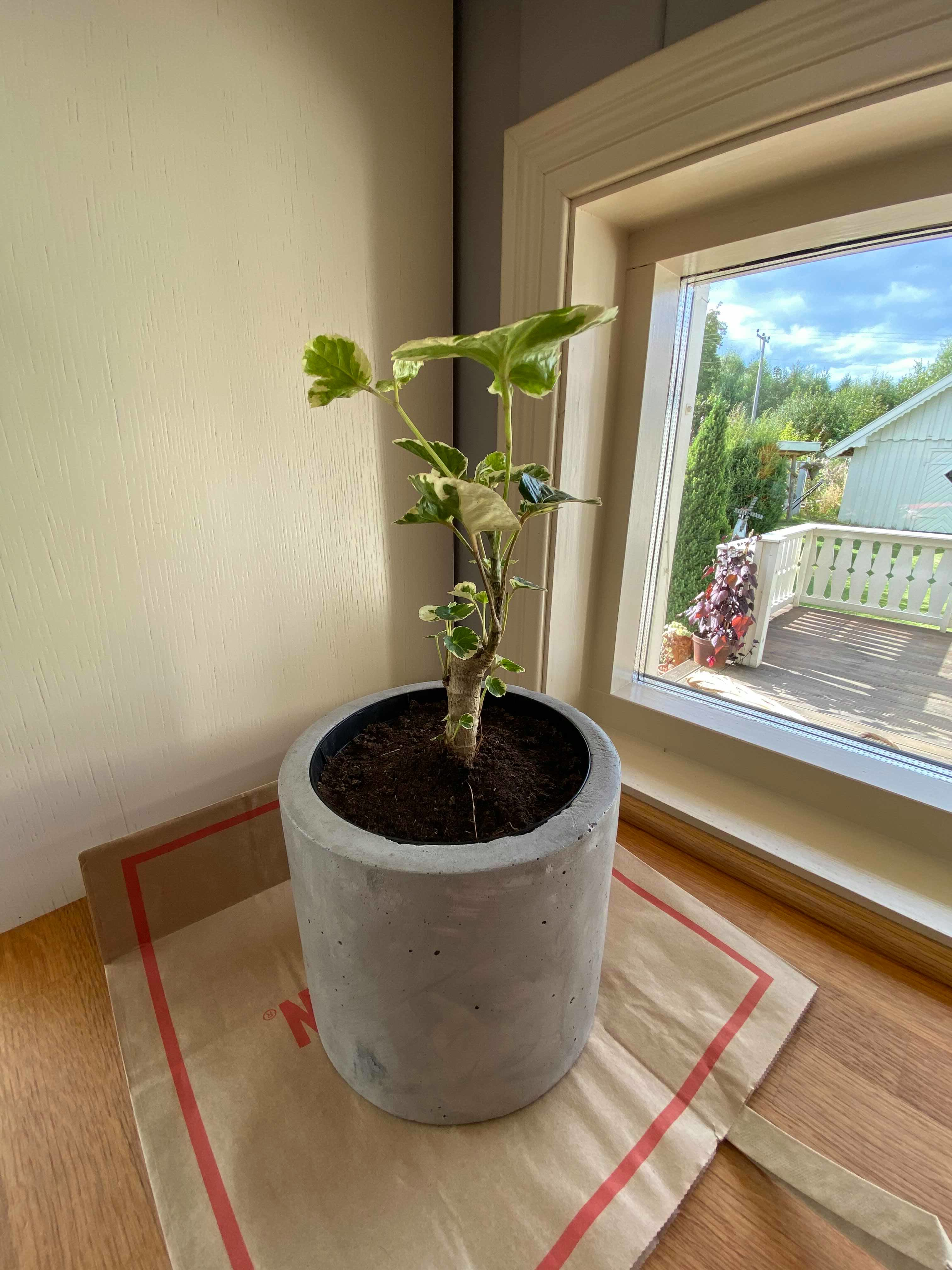 I texted my friend and explained that we had a school project with a plant, at the same time I joined a facebook group for people who is very interested in plants. I also posted a picture of the plant there, asking is they knew what the plant is and if/or they had some tips for taking care of it. After a while my friend texted me back and she had the answer! I also got it confirmed by several members of the facebook group. It was a Polyscias Balfouriana, but the common name for it is Dinner Plate Aralia. This is because of the size of it, it can be up to 1" - 2" , like a dinner plate. And can grow up to 20 meters tall, but is often only growing up to 50 cm. The plant is native to Africa, Asia and Australia parts of North and Central America, and South America. The thing is that this plant is not the best plant for new beginners, since you can easily over water it and drown it. But I don’t think that will be a problem for me since my problem before when taking care of plants is remembering to water them at all. The plant is not supposed to be in direct sunlight either so I found a good place for the plant beside the window, but not to close for it to dry out for the sun, since the plant prefers the shadow but a little sun. A little warning to keep in mind is that the plant is poisonous and should be kept away from pets and children. I had to have this in mind since I have a cat at my mom’s place, where I originally had the plant, so I had to place it kind of out of reach for the cat. Not risking to poison the cat.