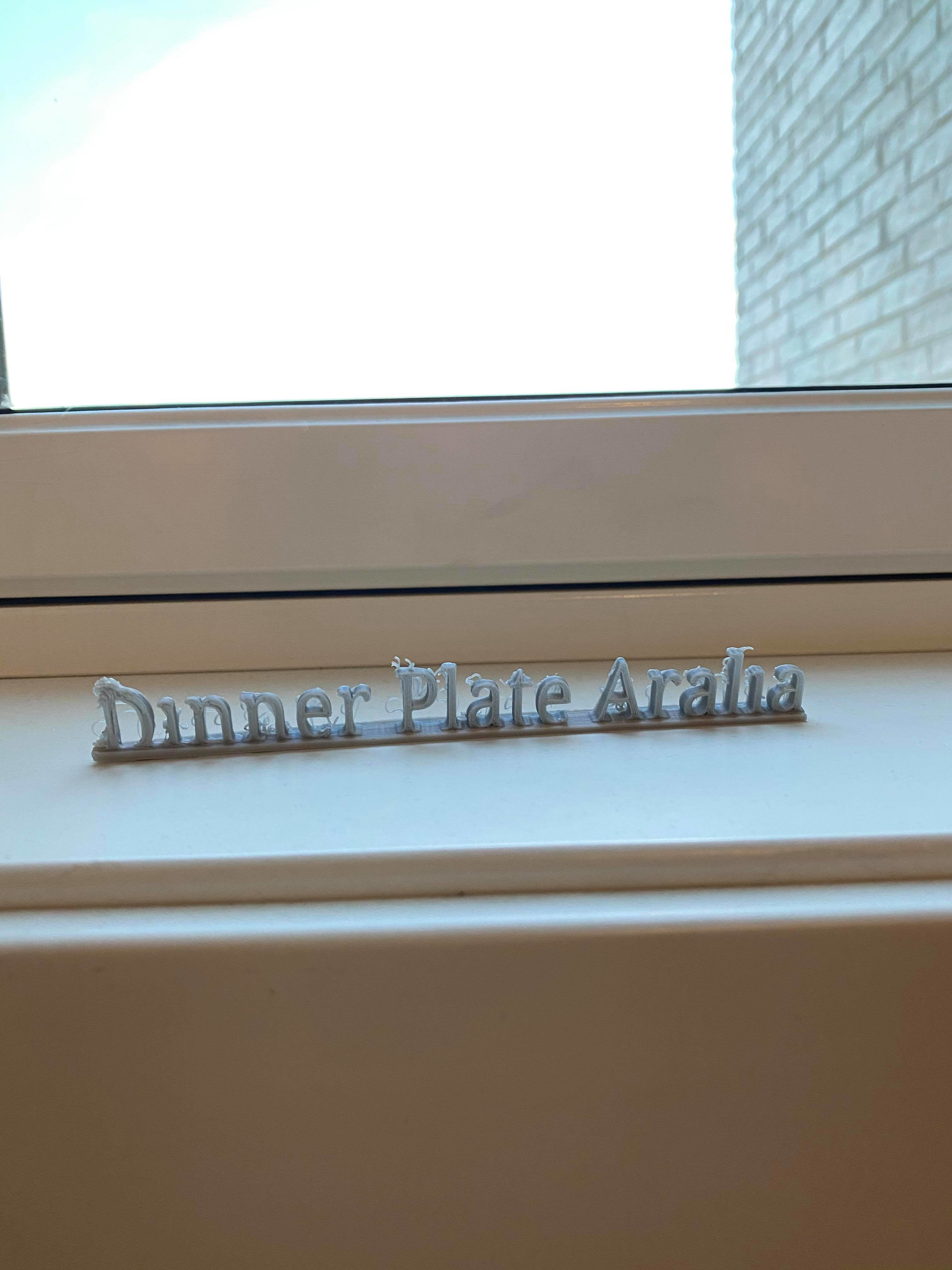 I made it 15 cm wide and 2 cm high. I wanted a color matching the pot for the plant, so I made it in silver, with the filament. On the moose I chose a filament that was slightly black with sparkles in it. When I first started printing the letters, I forgot to put a brim on so the object kept letting go of the bed, but as soon as I got the brim on another problem occurred. I forgot to put the right printer. I had managed to put the PLA Mini printer on. But after these two minor mistakes the printing went very well. I really liked the outcome of both, finding the moose very cute. I believe the sign will be a perfect fit with the pot. The sign did become a bit “hairy” but I actually found it suiting for the plant, making it more natural rather than harsh.
