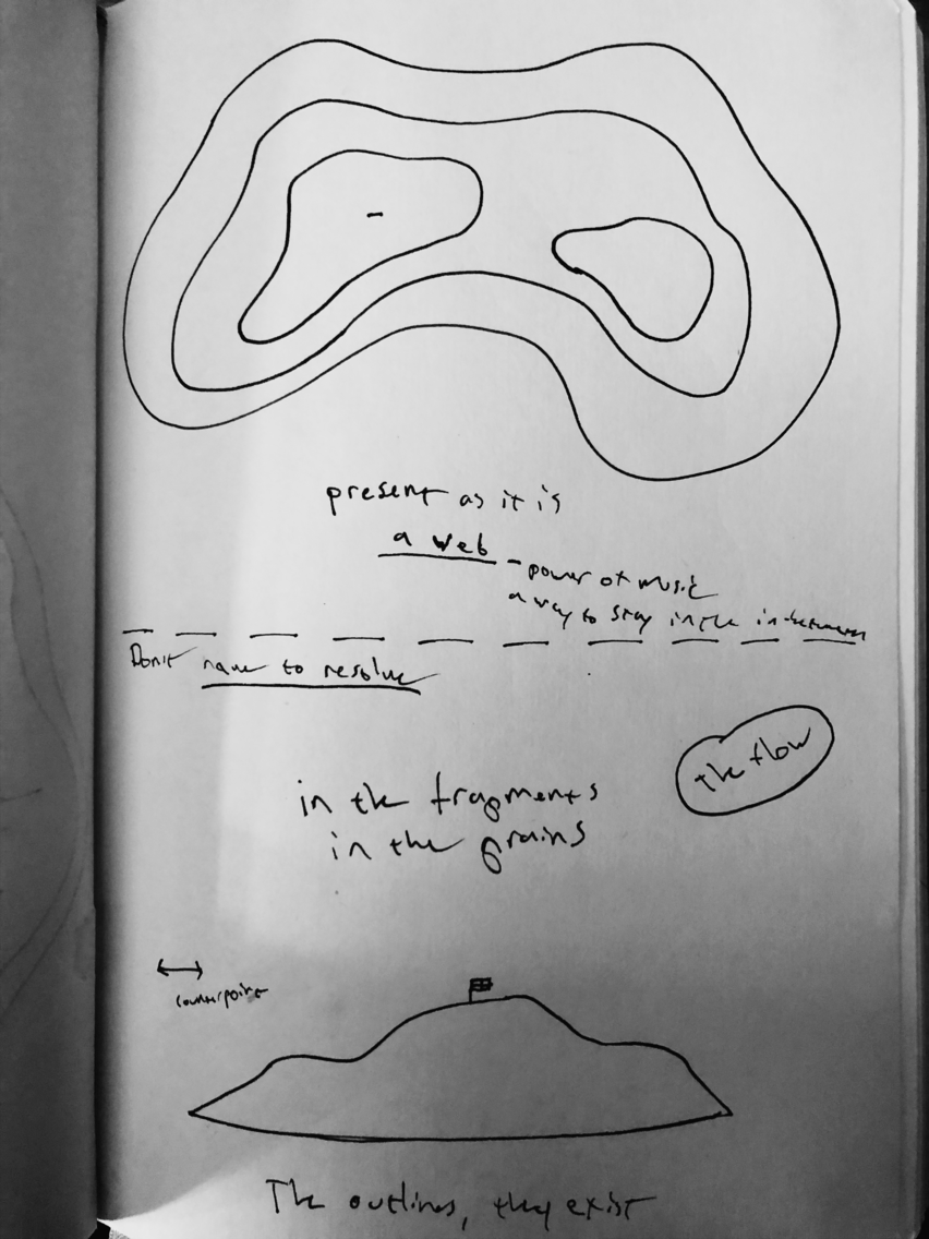 Real time composition/Improvisation, Temporal displacent, delay, granular processing. Cache. Frame rates, fragments, recent past, less recent past.