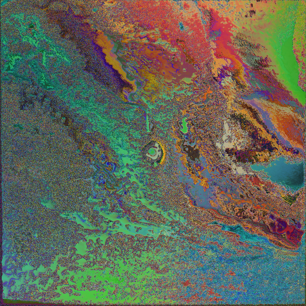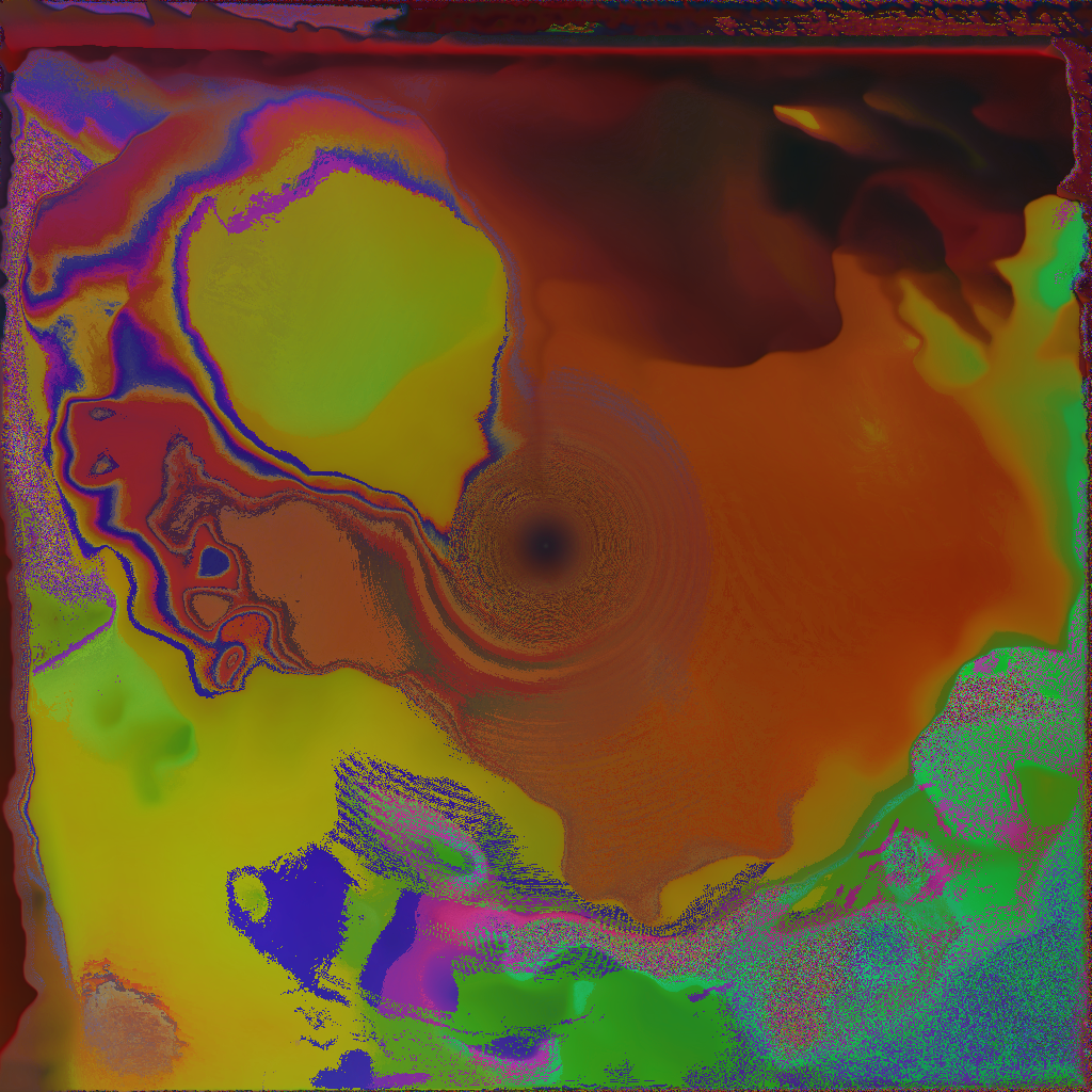 The images above represent the output of a network with two Simplex noise operators in a feedback loop inside TouchDesigner. Simplex noise is an evolved form of Perlin noise, an algorithm, or a procedural texture developed by Ken Perlin in 1983 to give an impression of randomness: “It needed to have a variation that looked random, and yet it needed to be controllable, so it could be used to design various looks.” [1] It is a pseudo-random noise function that is often used in computer graphics to make visual elements appear more natural, for instance it is often used in video games to generate landscapes and terrain. The fact that it is an algorithm rather than an image-based texture, allows it to be scaled and altered in many ways. Perlin explains noise as a seasoning to make things irregular and more interesting, he also notes that the fact that noise does not repeat makes it useful in a similar way that a paint brush is useful when painting: