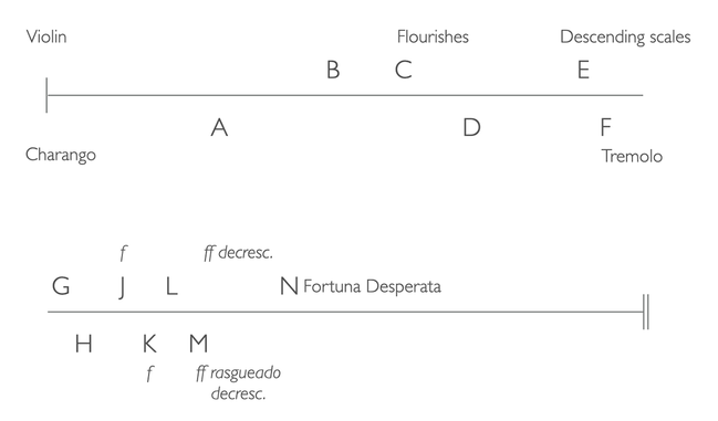 The city of Potosí, whose silver mines in the Cerro Rico mountain became a central source for the growing wealth of the Spanish empire, starting in the early 1570s, hosted guest workers, mitayos, from villages up to hundreds of miles away (Brown, 2012). These migratory influxes made the city a hotspot for intercultural encounters. There is no evidence concerning the earliest history of the charango, but Potosí is commonly regarded as the site where it emerged as a folk music instrument while, at the same time, carrying many features shared with Iberian plucked instruments (Baumann, op. cit.). They all have double courses and still, today, the most common tuning of the charango retains the principles of tuning of the guitarra espanola, such as described in 1650 by Athanasius Kircher (Baumann, op. cit.).
