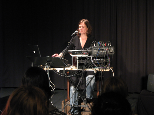 Part of my motivation for this project was my experience of a greater nearness between myself and the audience when I was talking to them and telling them something (as I would in a teaching or lecturing situation), compared to the musical performance situation, when I was reciting lyrics or poems, singing, or working with sound in different ways. I already had musical references (Laurie Anderson, Amy X Neuburg, David Moss) that were absolutely part of my inspiration, but first and foremost the project was motivated by these experiences of nearness and distance in a performing situation. The difference in the experience of nearness was not only related to the situation of “not fulfilling the expected singer’s role”, as discussed earlier (Section 4.1). First and foremost there was an experienced difference between being a musician and being a storyteller. I imagined this nearness through the act of speaking as being the result of an identifying process: if someone tells you something that you can identify with, through your own experience and/or knowledge, you start to know the person in a different way than before, identifying with the person through your shared experiences. I wanted to find out if the nearness created by taking the role of the storyteller could also bring the audience closer to a musical experience and the performance as a whole. This was also motivated by the wish to open up those parts of my musical expression that for some audiences might be experienced as being too abstract or alien. Working with improvised and sometimes experimental music, I sometimes feel responsible for making music for “expert audiences”. The use of electronic processing, the improvised character and the focus on sound rather than the traditional musical elements, is something that excites me, but: could bringing in a more communicative element open up this musical world for new audiences?