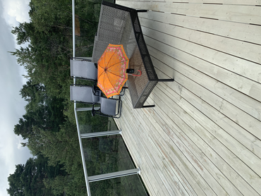 Da jeg var ferdig med innspilling på badet og i ferd med å pakke ned hørtes plutselig et tordenbrak og regnet tok seg opp igjen. Jeg ønsket mer regn på opptaket, og satte derfor opptaker og paraply på verandaen igjen og gjorde et nytt opptak, nå med mic gain nedjustert til 4 etter opptaket på badet. Her er samme utdrag som i første opptak, men nå med mer regn: