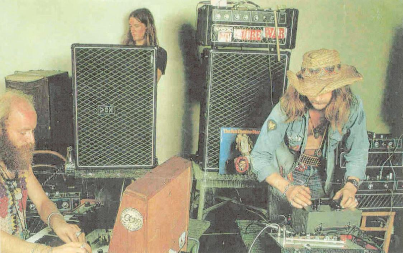 It was Del the longest haired building labourer in the world, who entered with a hod on his back. And in the hod a bleeping, chirping, wherping, blaspheming machine […] “It’s a sympathizer” he said “It must have heard sound coming from the room and started to sympathize. And now I can’t stop it.” Nik Turner [saxophonist] the birdman peered through the curtains. The room was curiously vibrating. “Hey” said Nik, “The room appears to be in Outer space […]” Dave Brock [the founder of Hawkwind] pulled back the curtains “Right we are.” He burst “We are in space. We’ve taken off. What now?????” Del and Dik Mik are both electronic freaks with no musical upbringing and not enough money to purchase a Moog. (Pinch and Trocco 2002: 215)