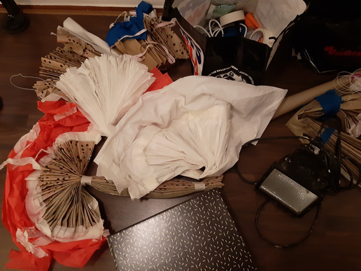 The following pictures show the process of making the costumes for the practice.