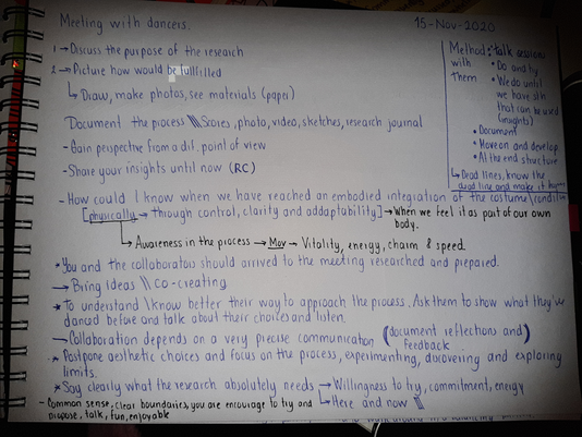 In our first meeting, I introduced them to the subject and purpose of the research. The following photo of my journal, are the notes I kept to make sure I keep in mind essential information.