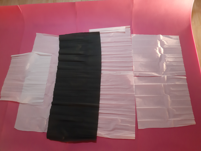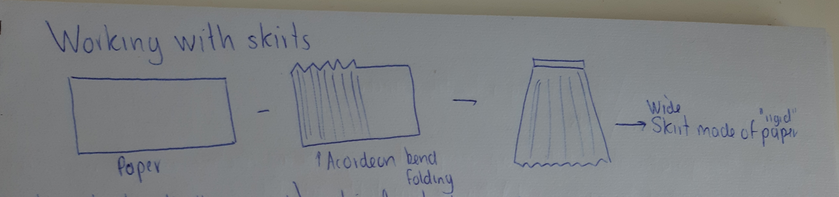 The pictures show the process of creating the skirts (giving structure by folding the material).