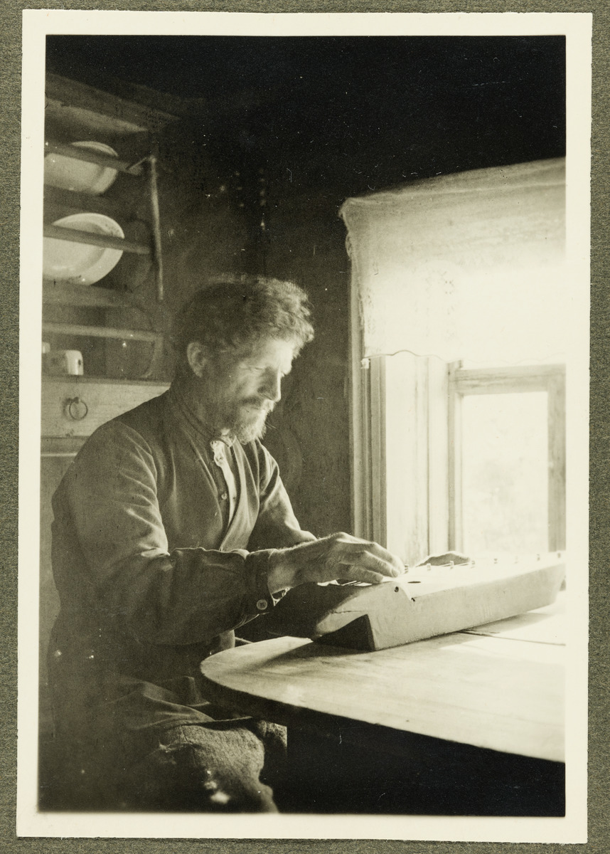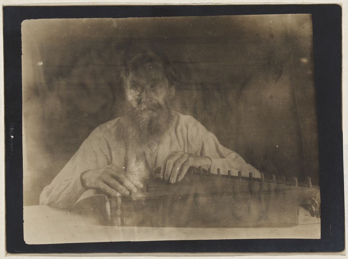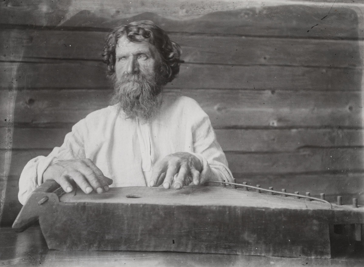 Image 5. Kantele player Mikko Mishujev in Kuujärvi, Syrjä, Olonetsia. Photographed by Aino Puosi in 1943–1944. Photo: The Finnish Heritage Agency_ (CC BY 4.0)._