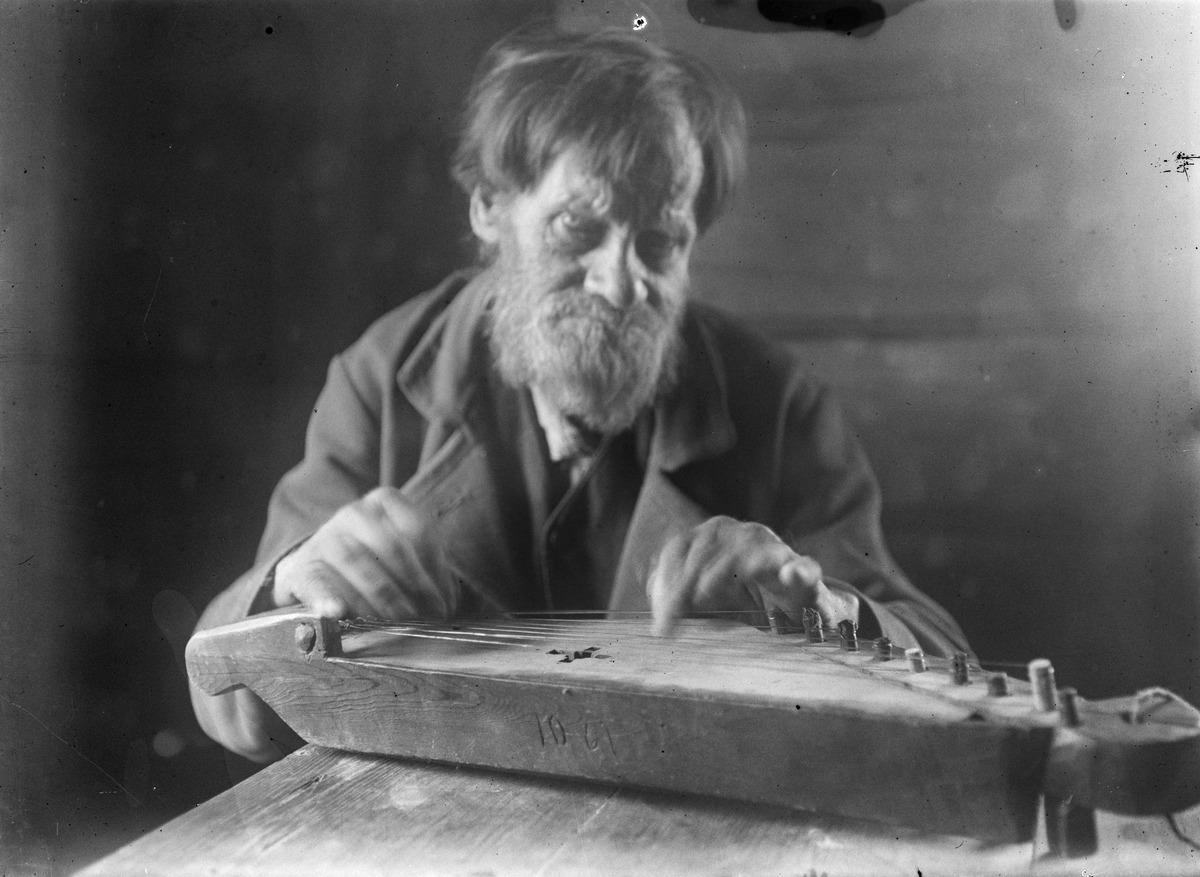 Image 4. Kantele player and runosinger Timo Lipitsä (1857–1950). Photographed by A. O. Väisänen in 1917 in Suistamo, Koitto, Border Karelia. Photo: The Finnish Heritage Agency (CC BY 4.0).