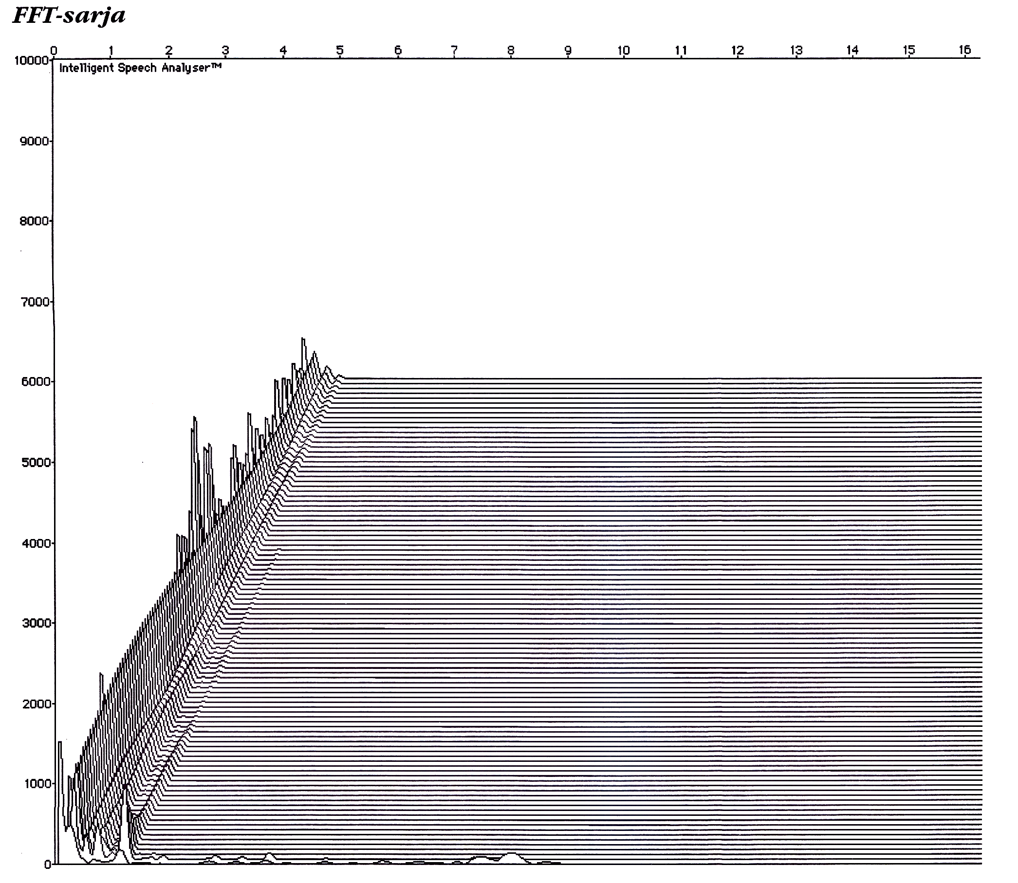 Figure 1. A FFT image of the tone A3 played as a muted sound on the Säteri; only about first five harmonics will emerge. (Kastinen 2000: 55)