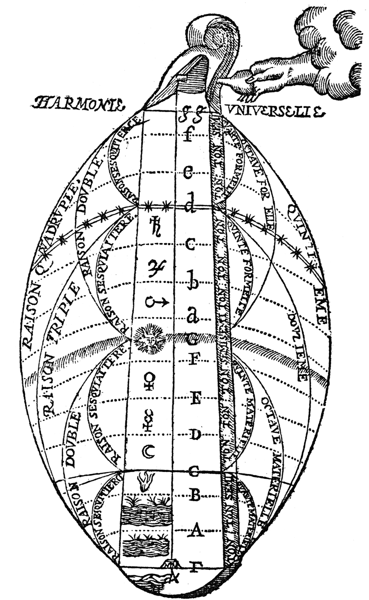 As many aspects of Pythagorean lore were absorbed into Neoplatonic thought, a certain religious undercurrent remained potent. For instance, consider the famous image of the world-monochord published by the English Neoplatonist Robert Fludd (Figure 1a), showing the hand of God tuning the cosmic string. Even though Marin Mersenne criticized Fludd’s mystic numerology and geocentric cosmology, Mersenne reproduced this same image almost identically in his Harmonie Universelle (1637, Figure 1b), next to his arguments for Copernican cosmology. Evidently, the appeal to God as world-musician moved Mersenne more than his many scientific disagreements with Fludd. More generally, the notion of “harmony” remained a powerful aesthetic criterion invoked by mathematicians and scientists to justify Copernican cosmology; Isaac Newton remarked that “Pythagoras’s Musick of the Spheres was gravity” (Westfall 1980: 510n136).