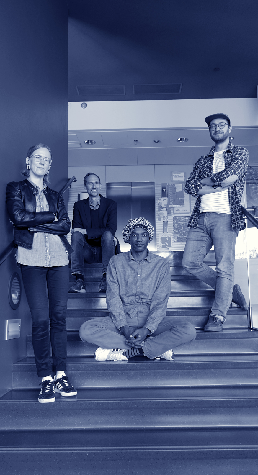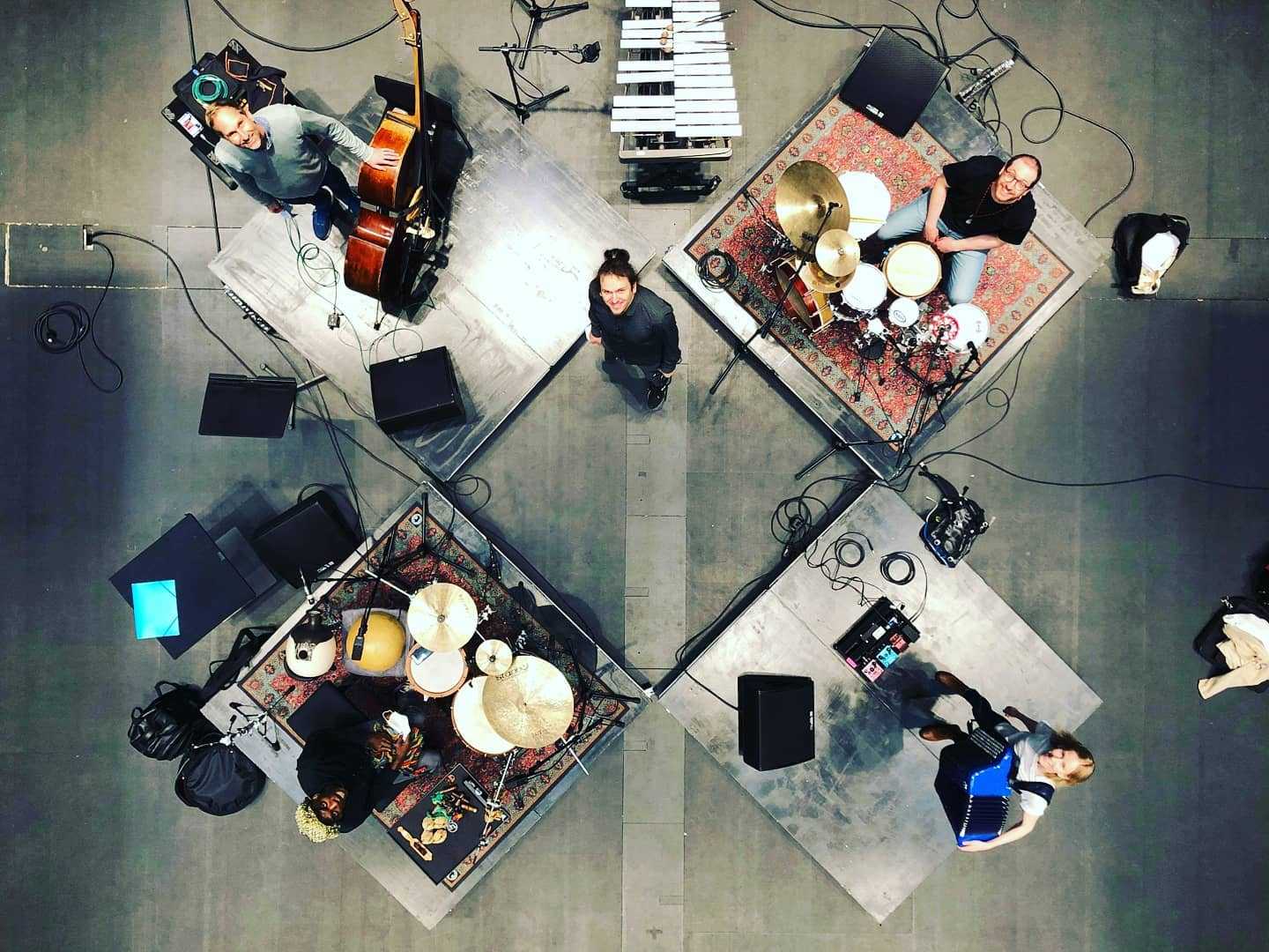 Colectivo Azul: Adriano Adewale (Percussion), João Luís (Percussion, drum set, electronics and composition), Nathan Riki-Thomson (Double bass) and Viivi Saarenkylä (Accordion). The members of this collective are established musicians and technicians in Helsinki very much driven by improvised music, intercommunication between arts/people and community engagement.