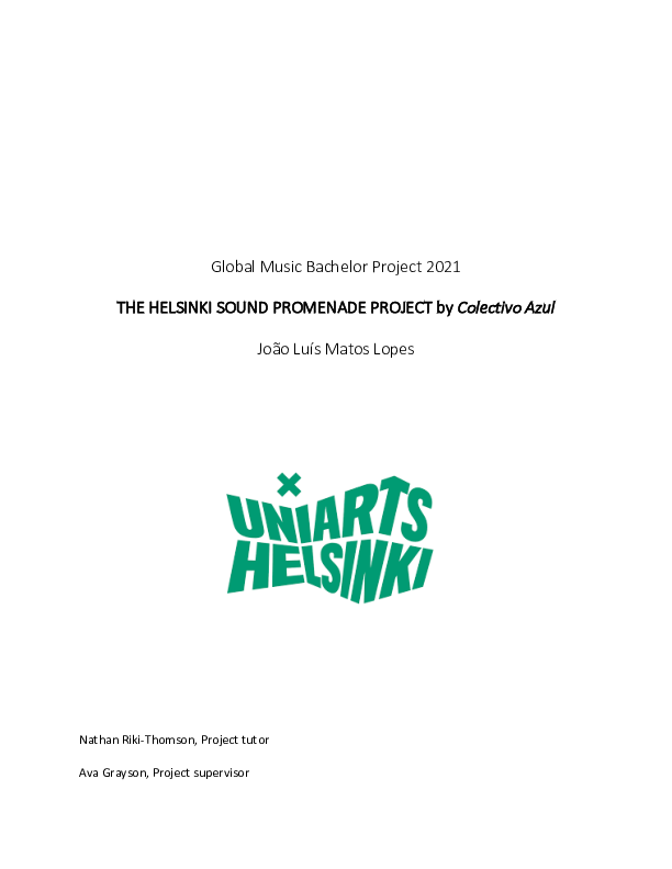 This written material intends to support the theoretical framework around improvisation and composition over the soundscape of the urban environment as well as exploring the interaction between the audience and the musical performance. It is structured essentially as an ethnographic presentation where there is a development of the speech starting from my own musical background, describing the evolution of the artistic process and culminating on the final project. Both theoretical and practical elements are based on a case study presented in form of an artistic performance in Black Box Musiikkitalo (Helsinki, Finland), on 24th of May 2021. Within the exposition, the qualitative results of the research are supported by informal interviews with the members of Colectivo Azul, documentation of sound and images of the urban environment of Helsinki, a sketching journal used as main tool for organizing ideas and developing a visual element that could support the investigation and field recording practices.