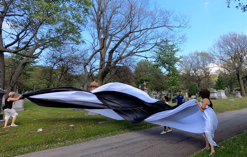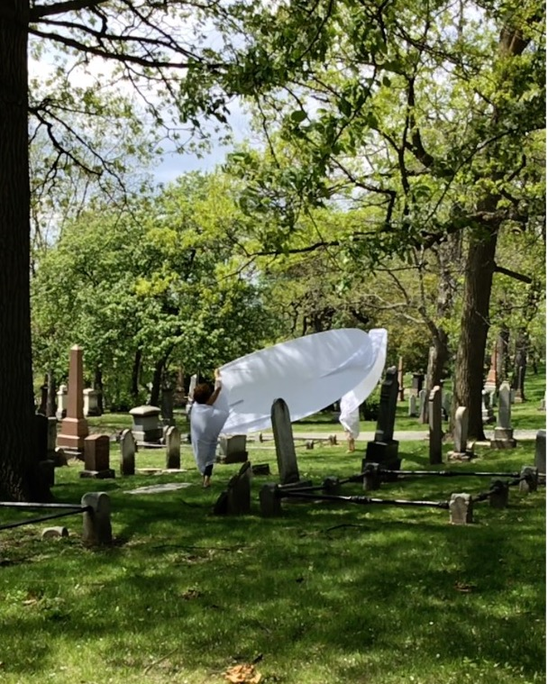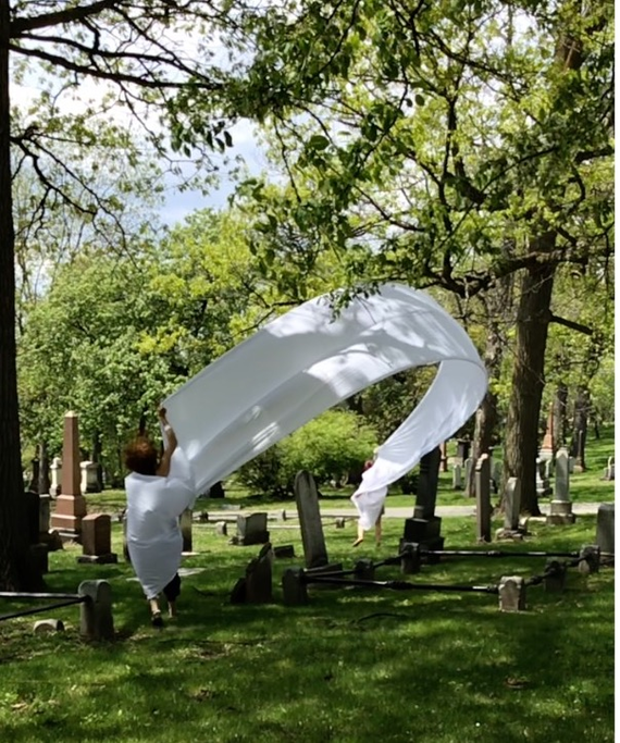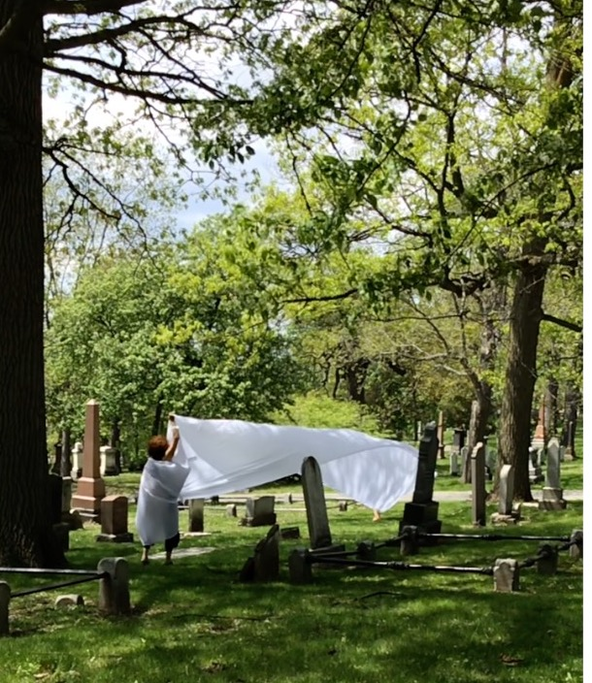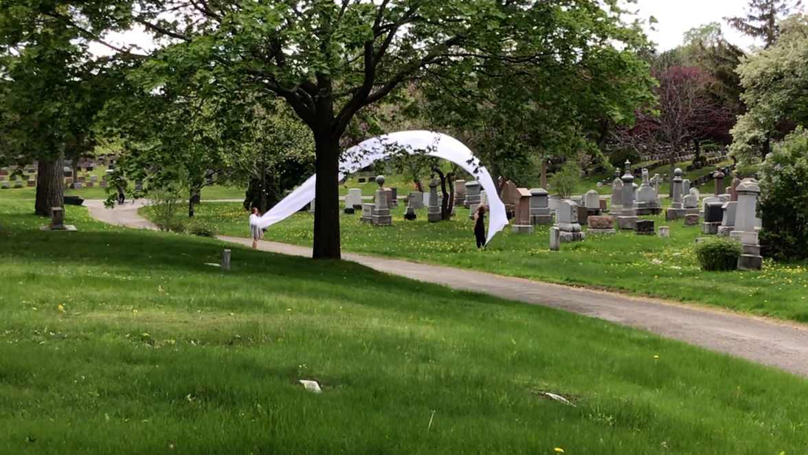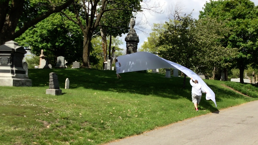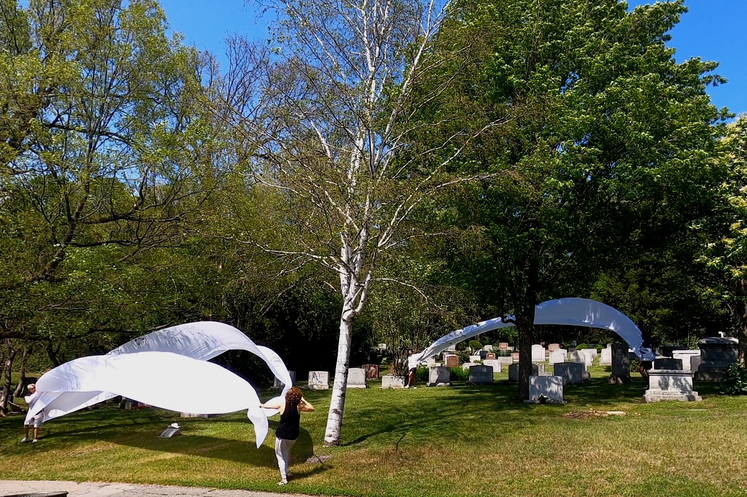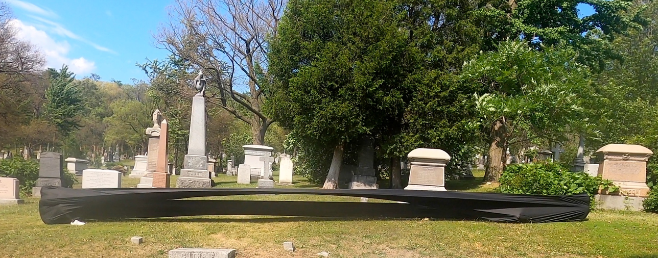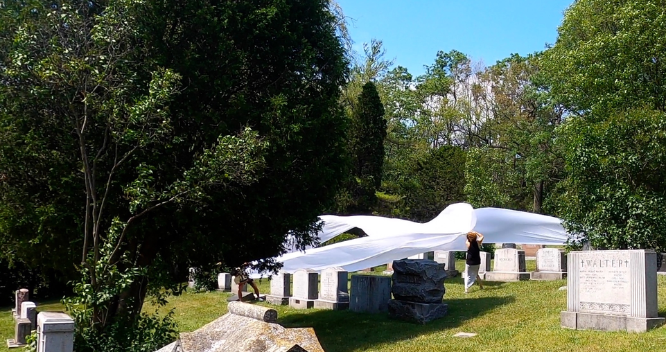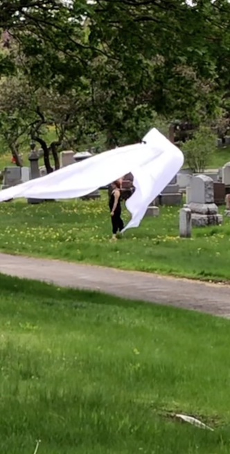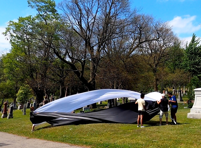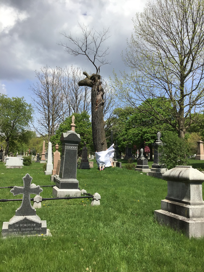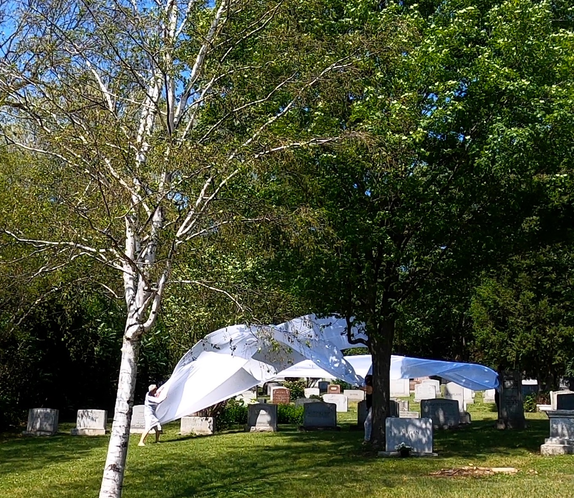 Complaints as to our 'irregular' presence in the cemetery began immediately and especially if the fabric touched tombstones.